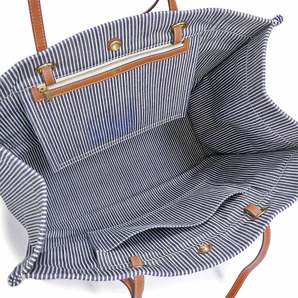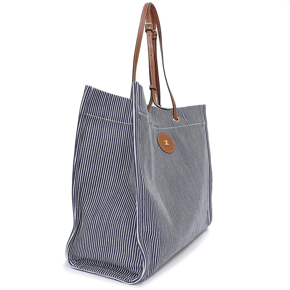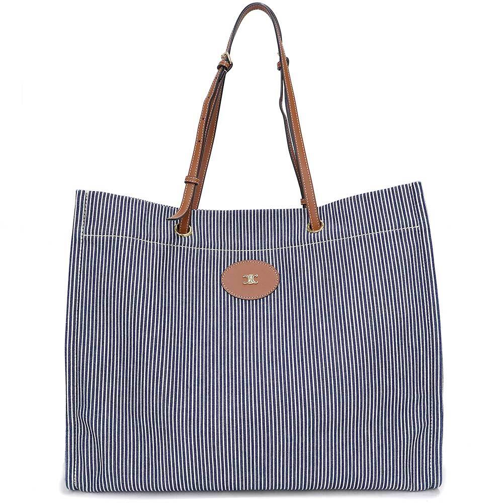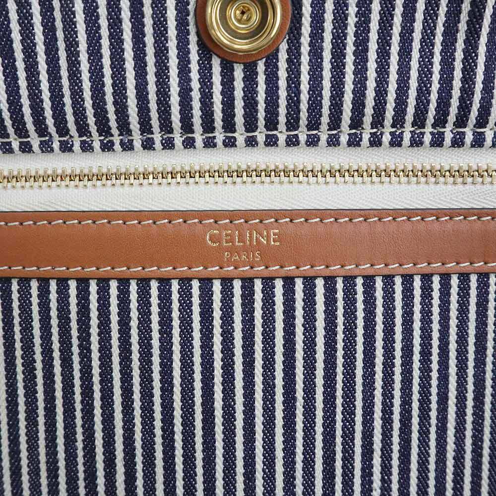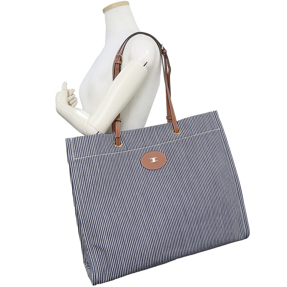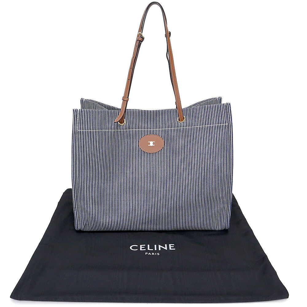 (美品)セリーヌ CELINE スクエア カバ セリーヌ トートバッグ ストライプ キャンバス カーフスキン レザー ネイビー タン 紺 192802CHD