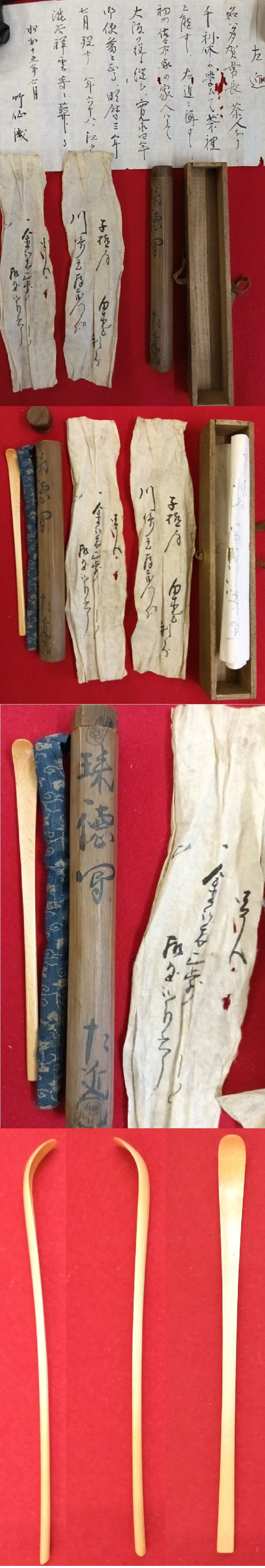 江戸時代前期 貴重 茶杓 多賀左近 利休十哲竹仙 識 筒服 識補箱 花押 茶道具 千利休 桑山宗仙