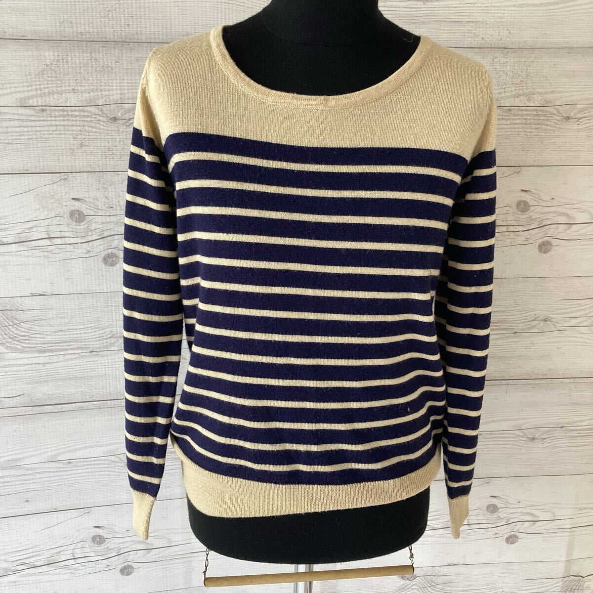 ビームスハート 長袖ニットセーター ボーダー ベージュ レディース