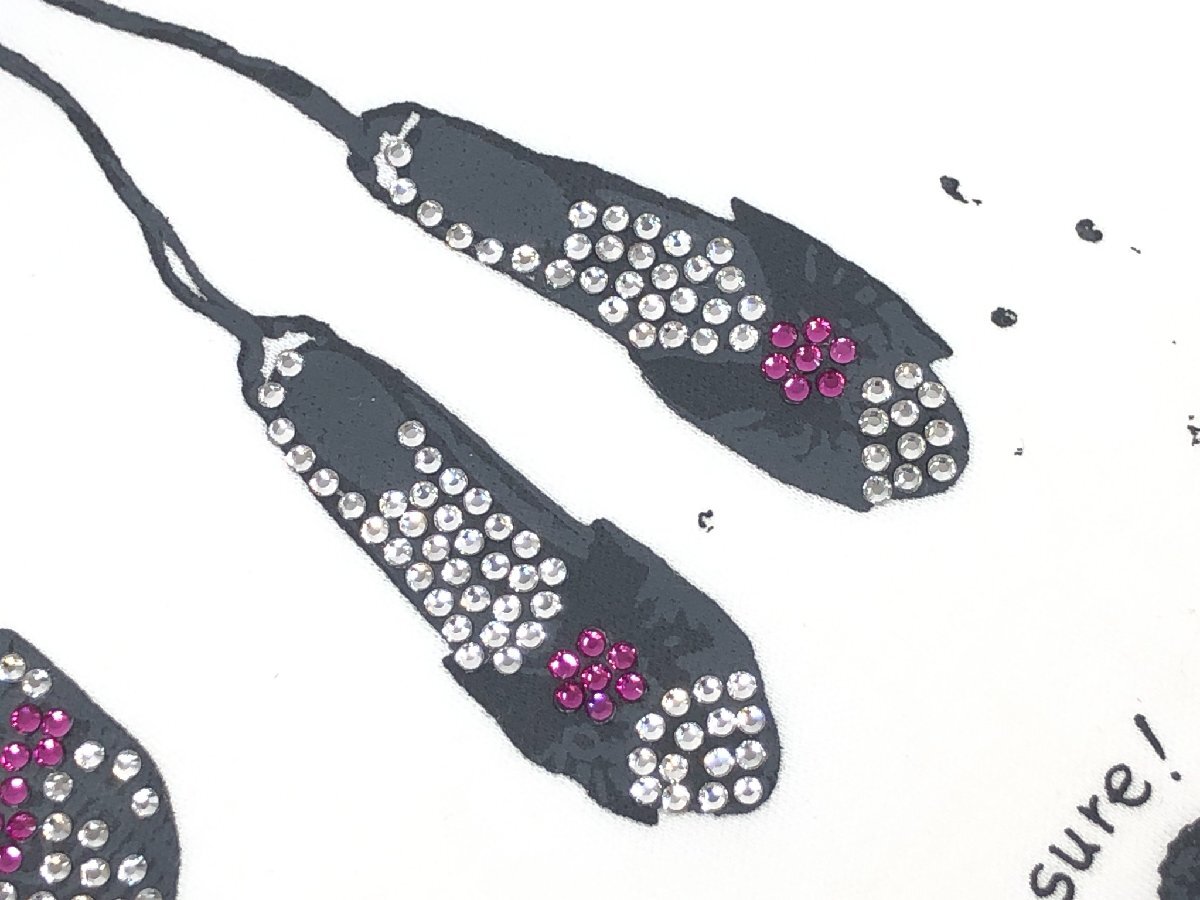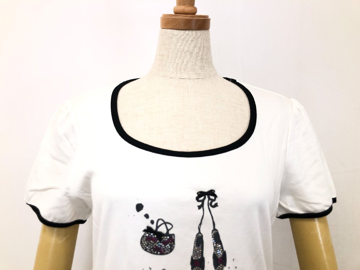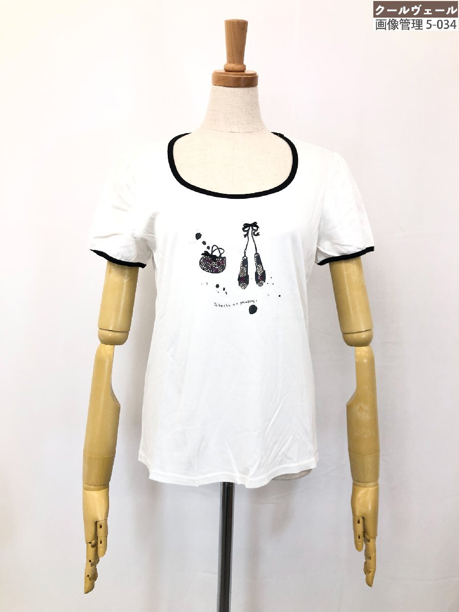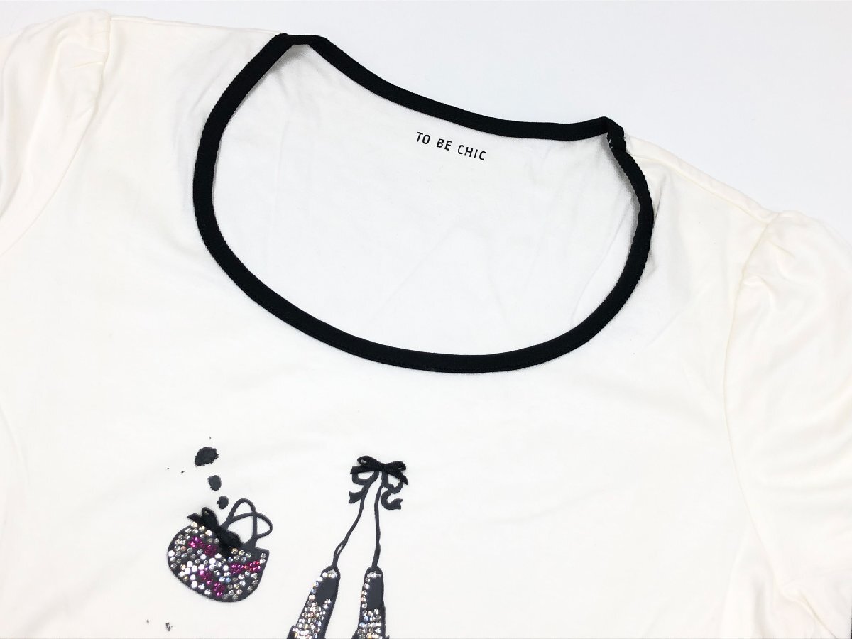 美品【TO BE CHIC トゥービーシック】W5P52-510-01 ビジュー装飾 プリント柄 半袖カットソー Tシャツ (レディース) 2 白系 ◇17LT5600◇