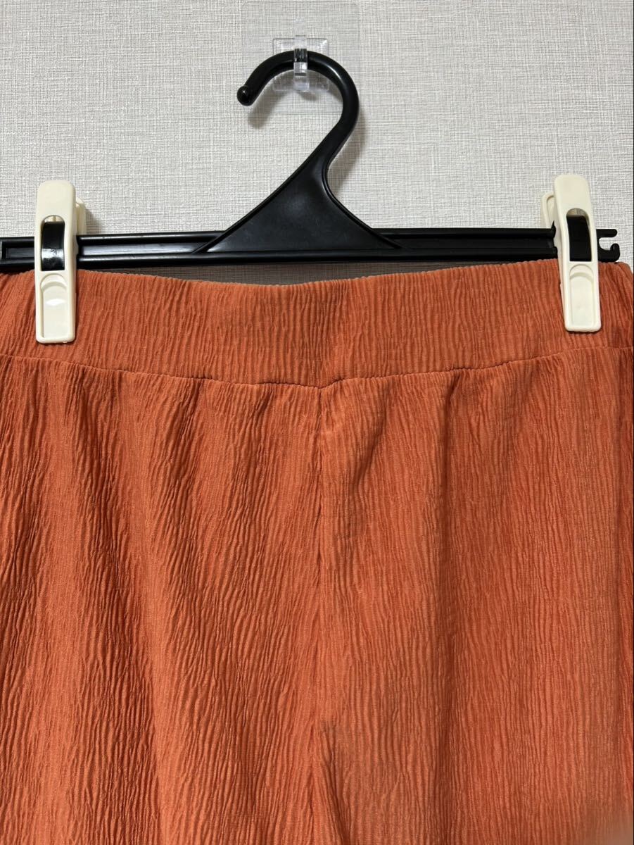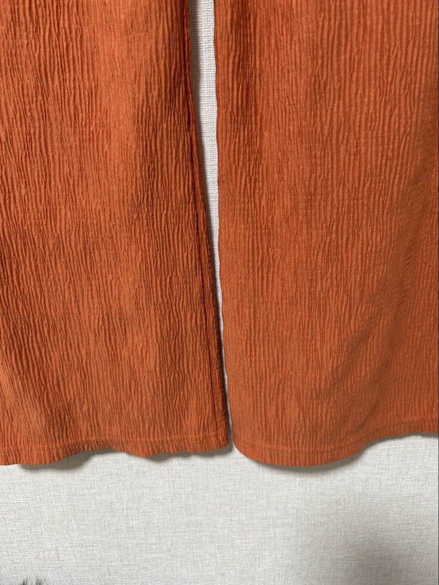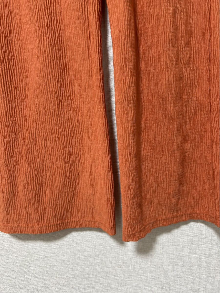 テクスチャーのあるオレンジのワイドパンツで、リラックスしたスタイルに最適。