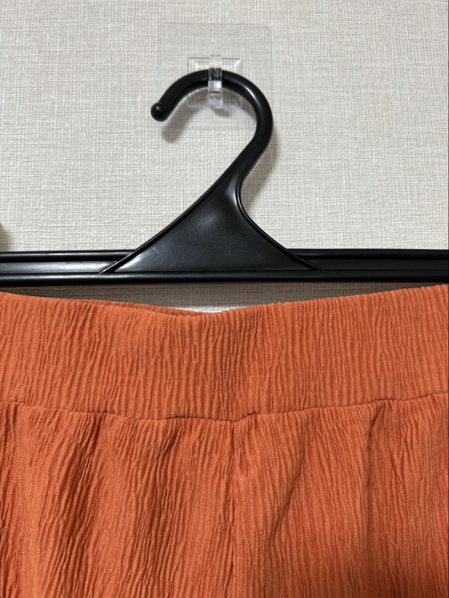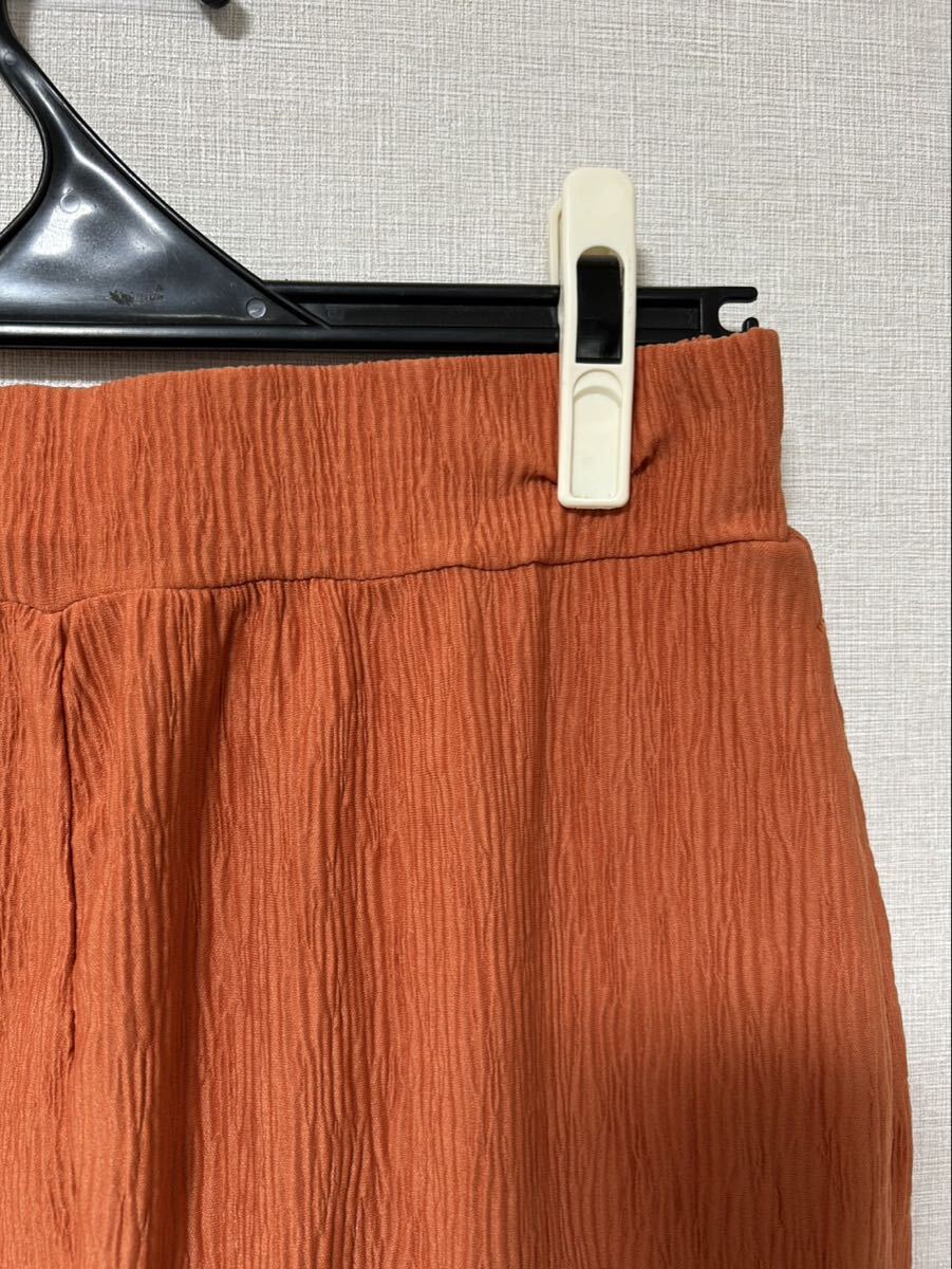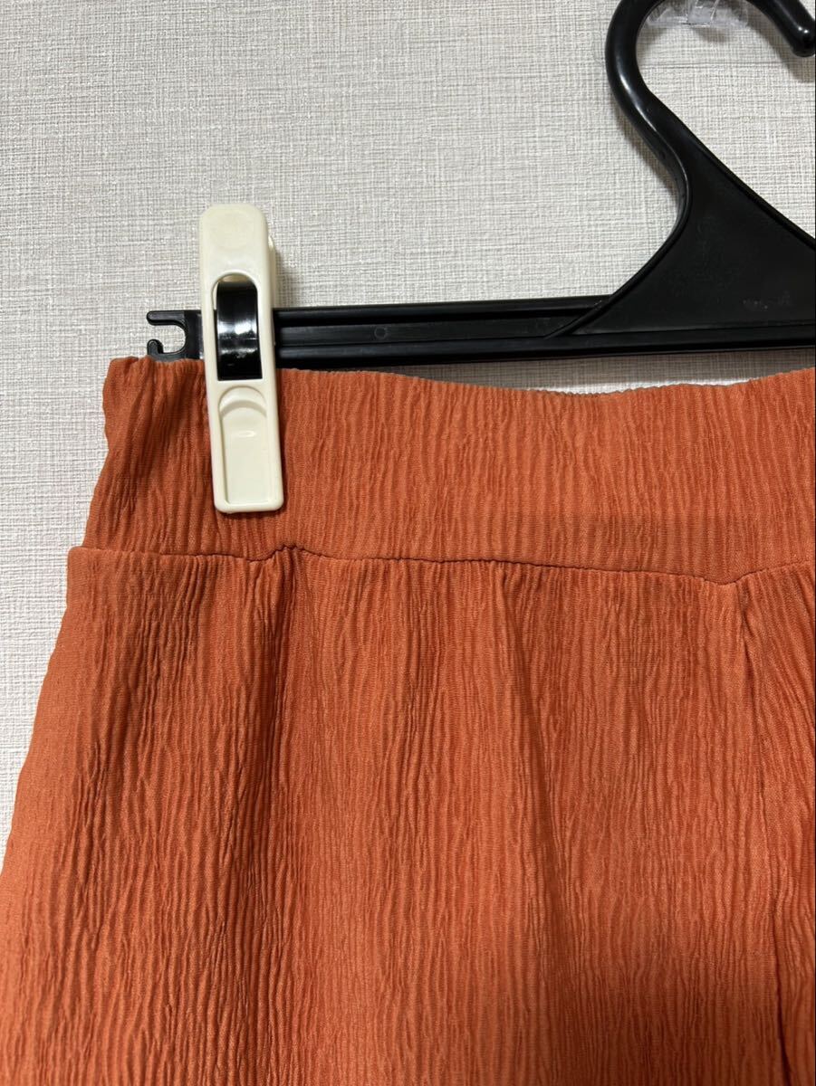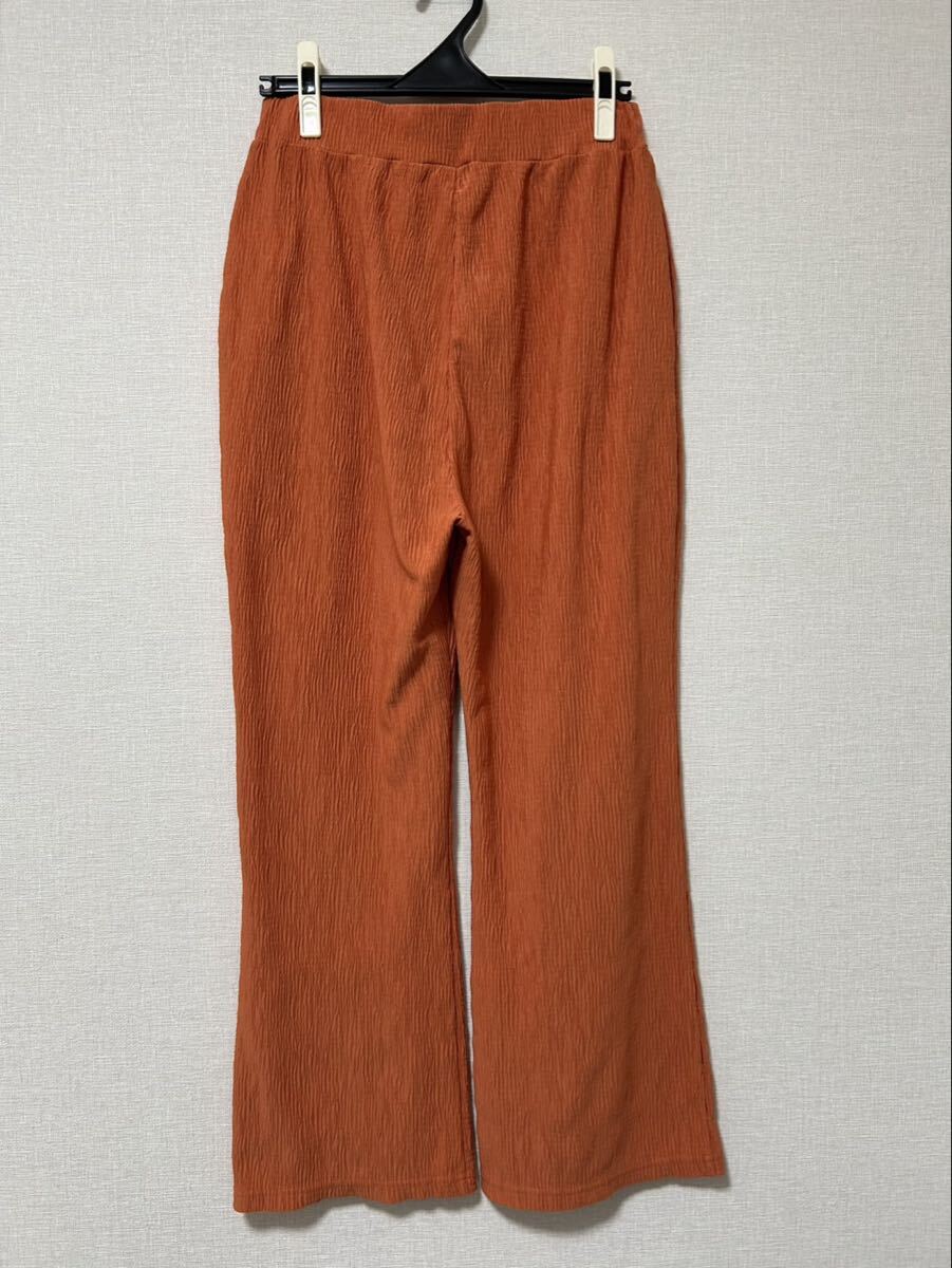 テクスチャーのあるオレンジのワイドパンツで、リラックスしたスタイルに最適。