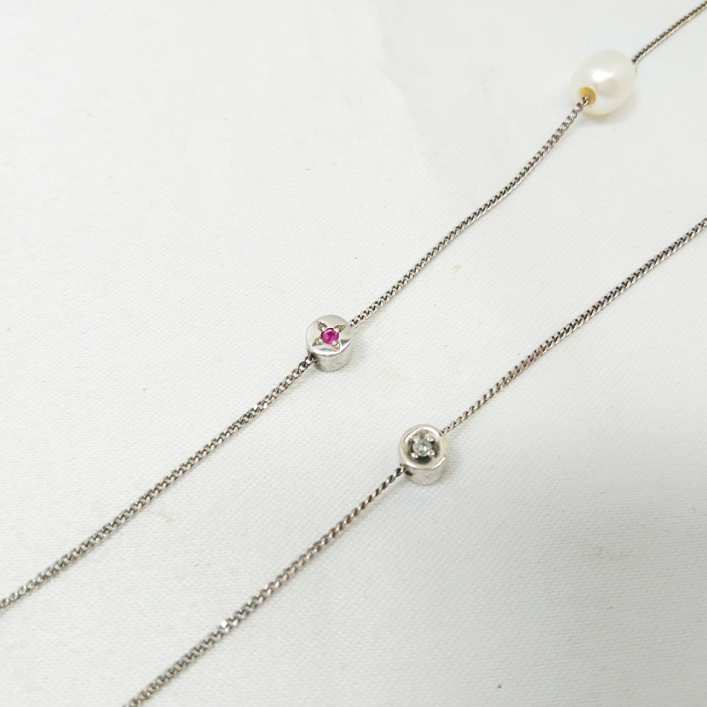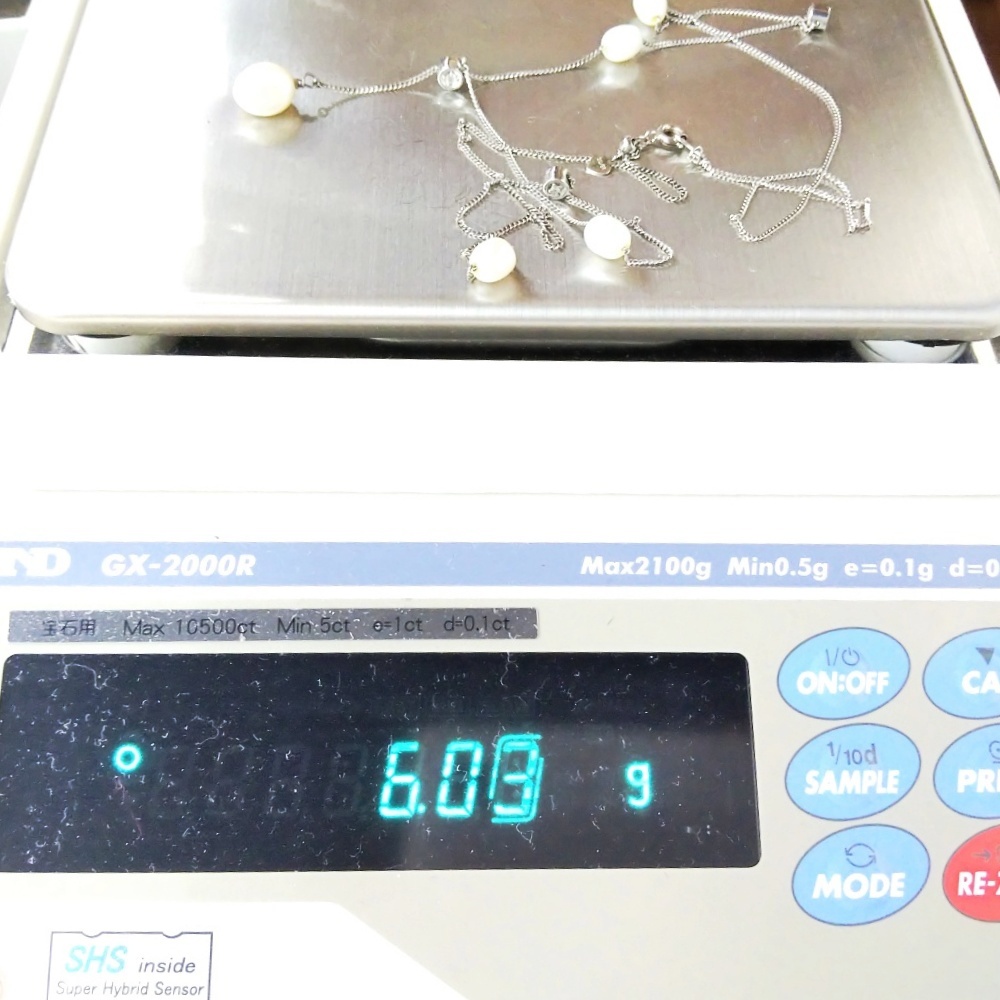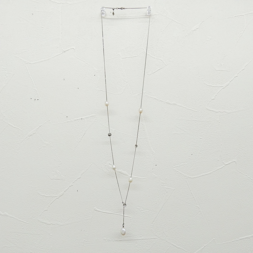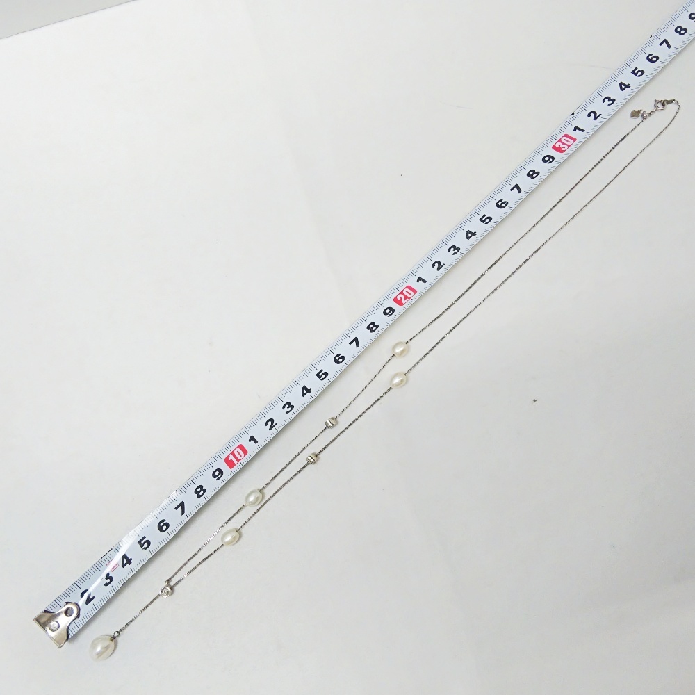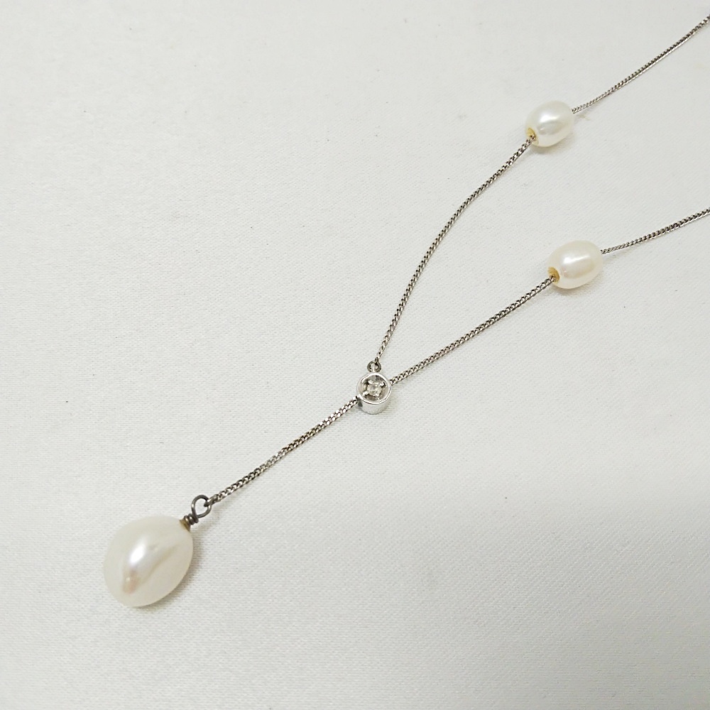 B25-2254 パールネックレス STERLING SILVER刻印 ダイヤモンド0.045ct トップ長さ調節可 総重量約6.0g 全長約60cm 真珠 ノーブランド