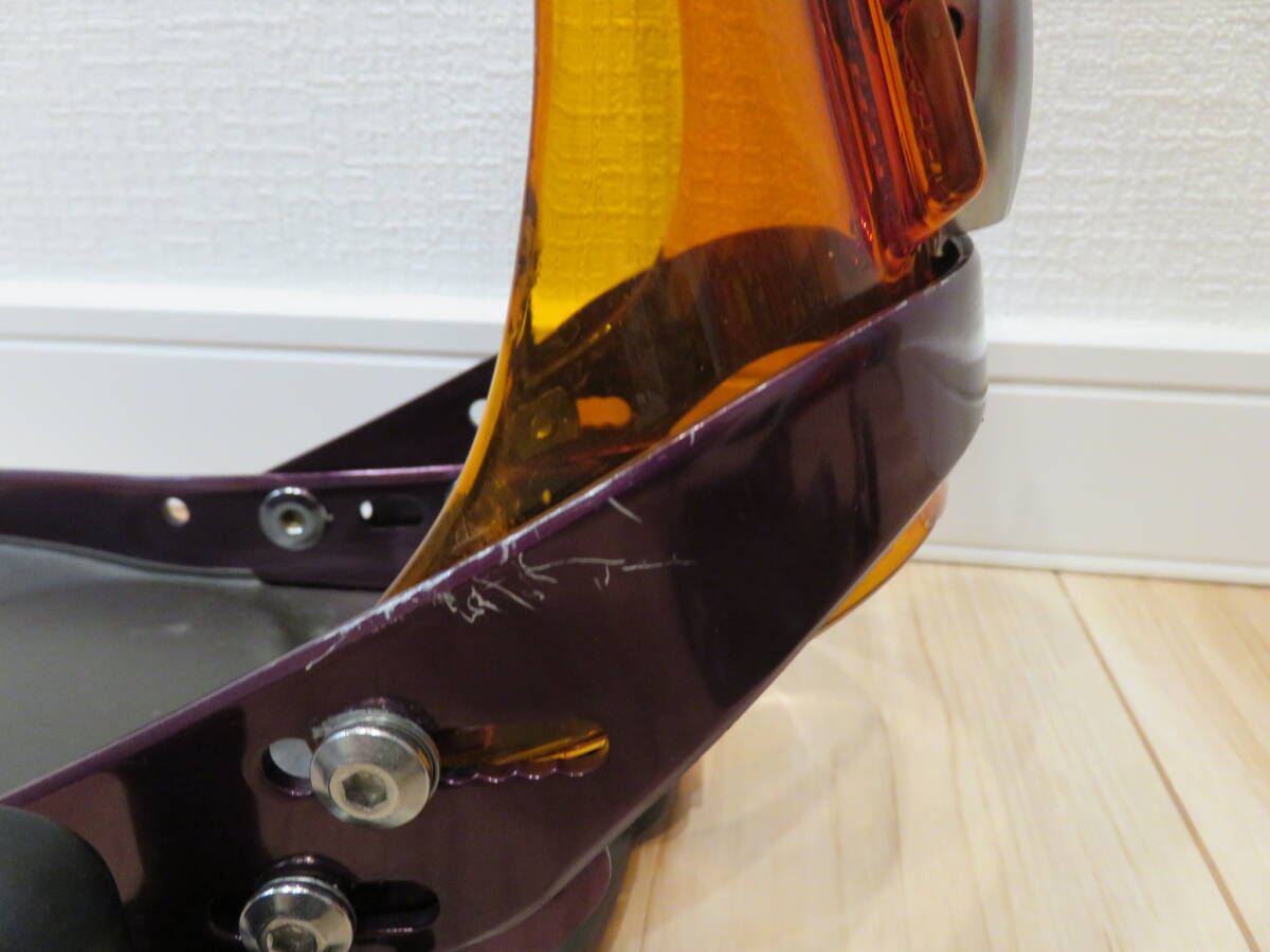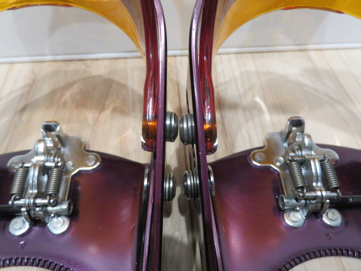 ※ビンディング本体とボードが接触する部分に通常はパッド(スペーサー)が付いているんですが、パッドの中に汚れなどが溜まりますので、パッドも全て剥がしてあります。その方が使用による汚れも付きづらく、使用後のお手入れが簡単です。ご使用の際にビンディングの下にパッド敷いていただければ、通常と同じ状態でご使用できます。もし、パッドを本体に取り付けてほしい場合は発送の際に、両面テープで貼り付けて発送させていただきます。