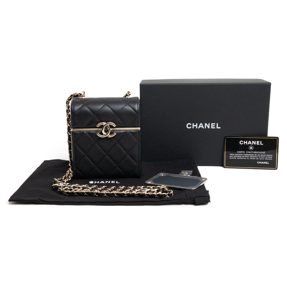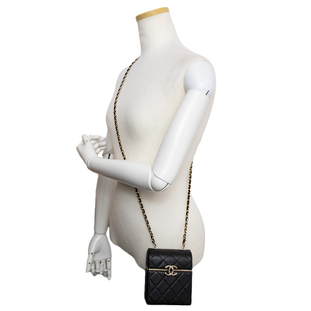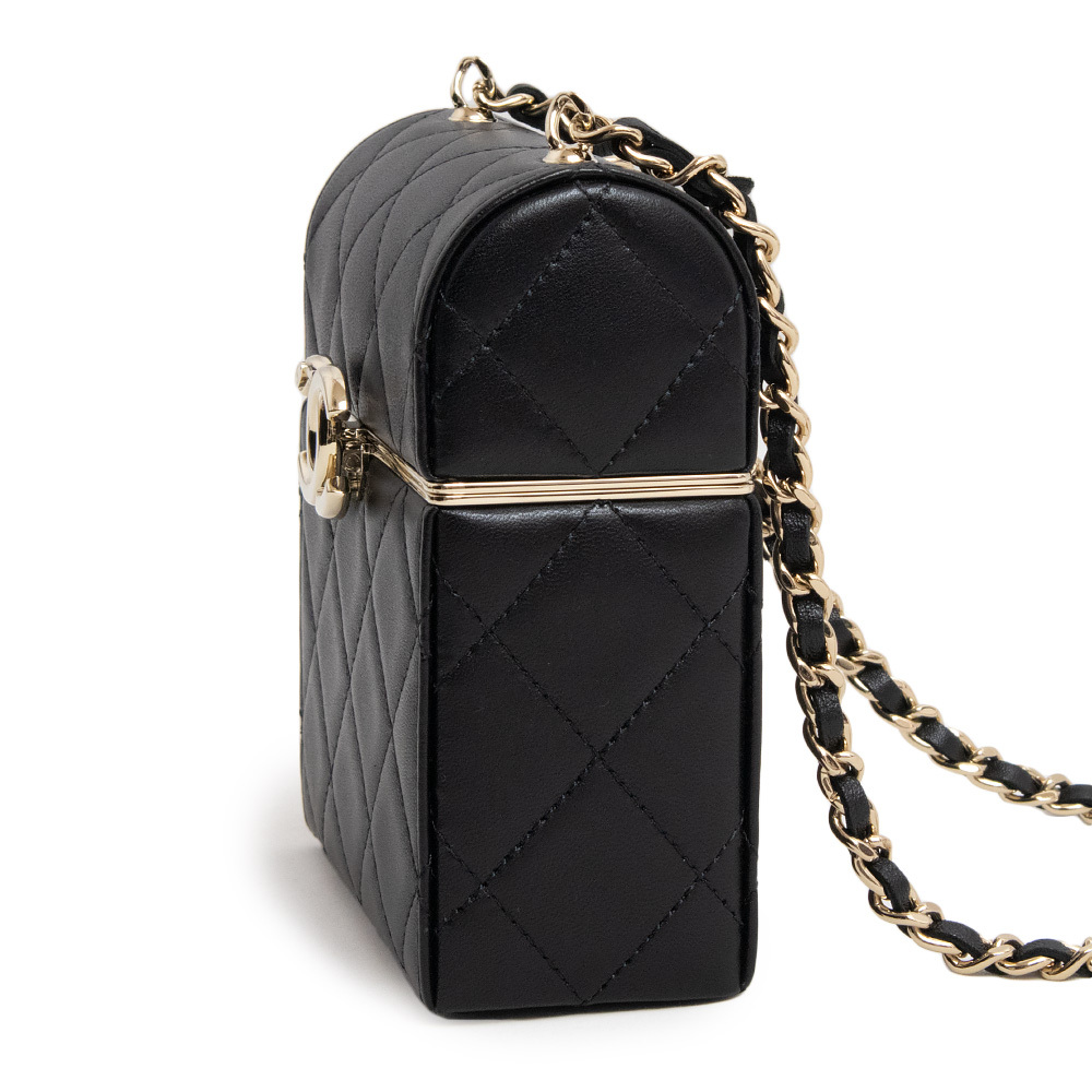 (新品・未使用品)シャネル CHANEL スモール ボックス チェーン ショルダー ポーチ マトラッセ ラムスキン レザー ブラック 黒 AP2656