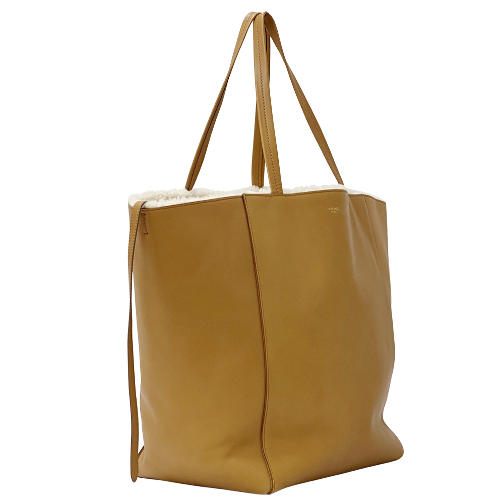 商品名 | セリーヌ CELINE バッグ レディース ブランド カバファントム トートバッグ レザー ウール ブラウン キャメル ポーチ付き もこもこ 秋冬 |