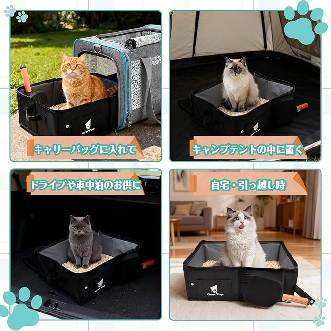 Amazon | Geer Top 猫 トイレ 折りたたみ ポータブル 簡易猫用トイレ 撥水 お手入れ簡単 軽量 アウトドア キャンプ 旅行 引っ越し 車中泊 防災 避難