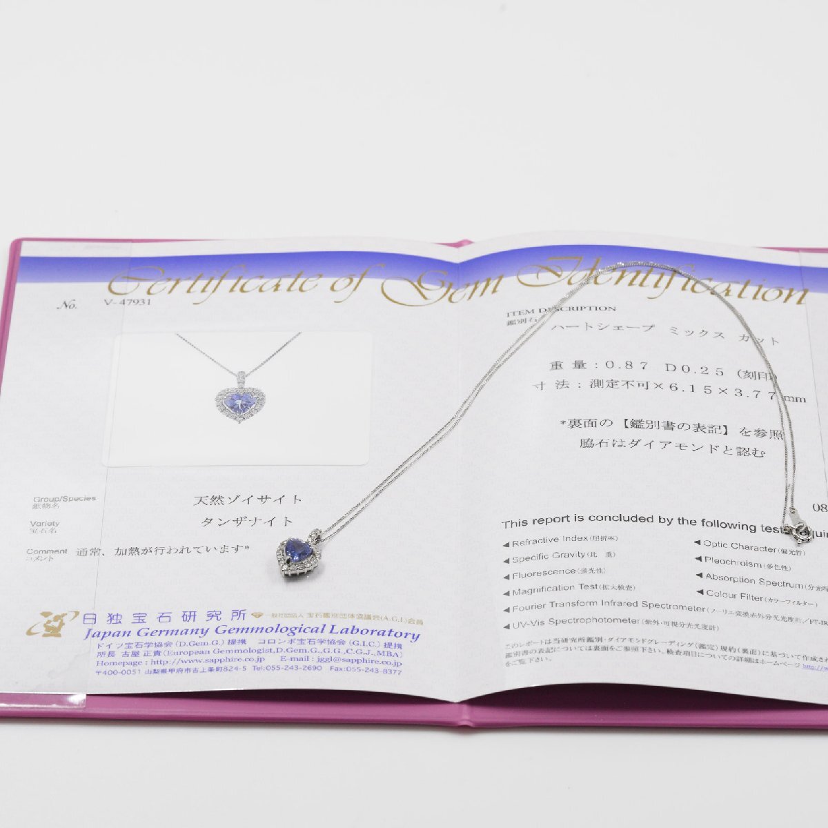 ハートシェイプ タンザナイト ダイヤ ペンダント ネックレス