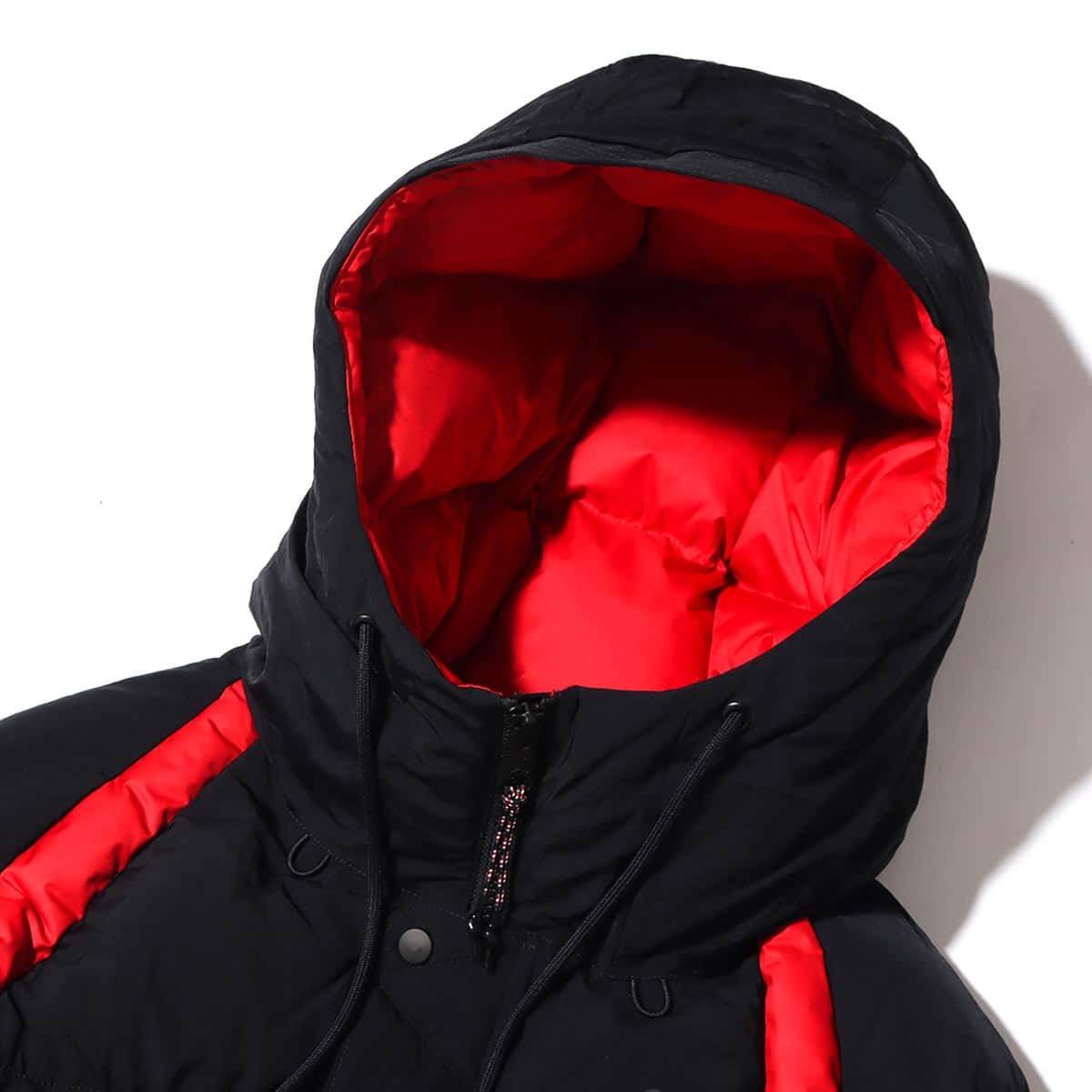 重ね着で冬の強風に対応。アウターレイヤーと裏地に撥水加工を施したウーブン素材を使用し、全体にふんわりした合成素材の中わたを断熱材として使用。カラーブロックをはめこんだセットインパネルは、NikeのアイコニックなAJ1 ウィングス ジャケットをイメージ。