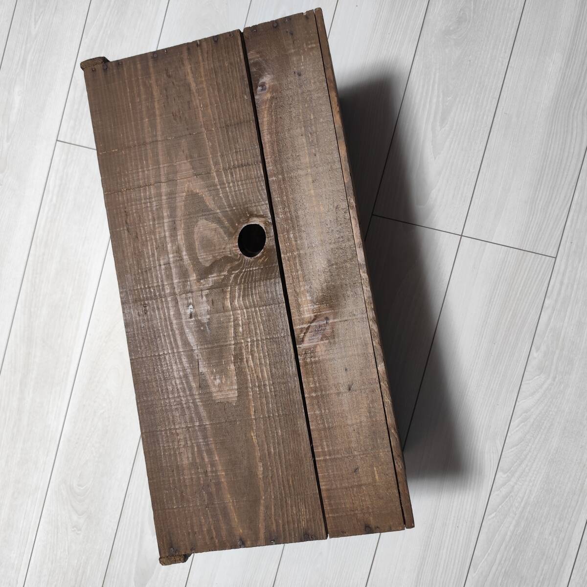 実際に使用していたリンゴ箱を洗浄後、サンドペーパーで整えたあとに