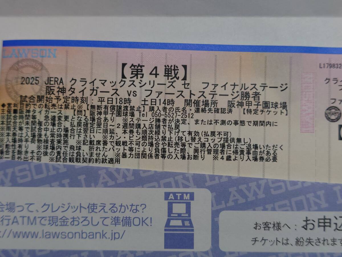 JERAクライマックスシリーズ セ ファイナルステージ 第4戦グリーン上段1枚通路側