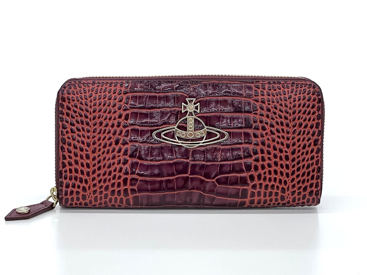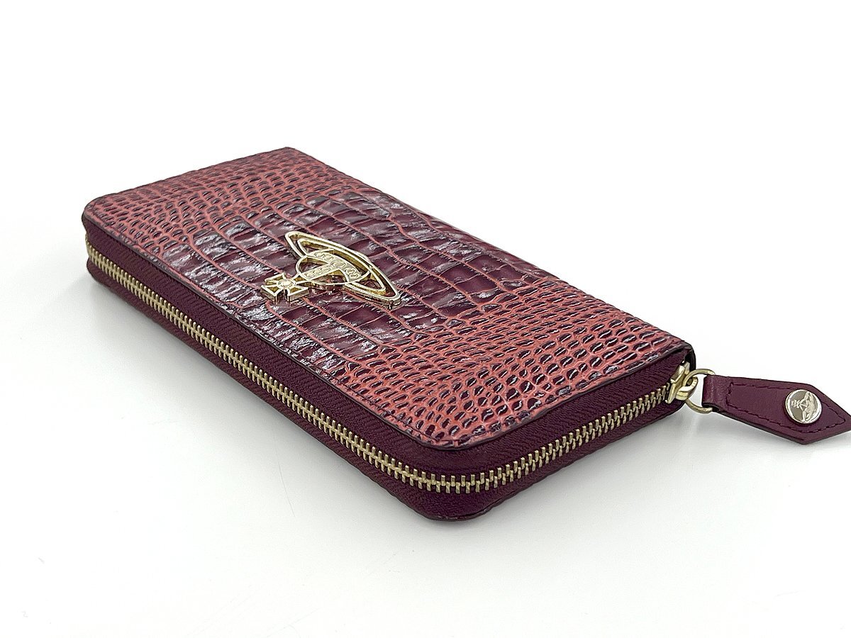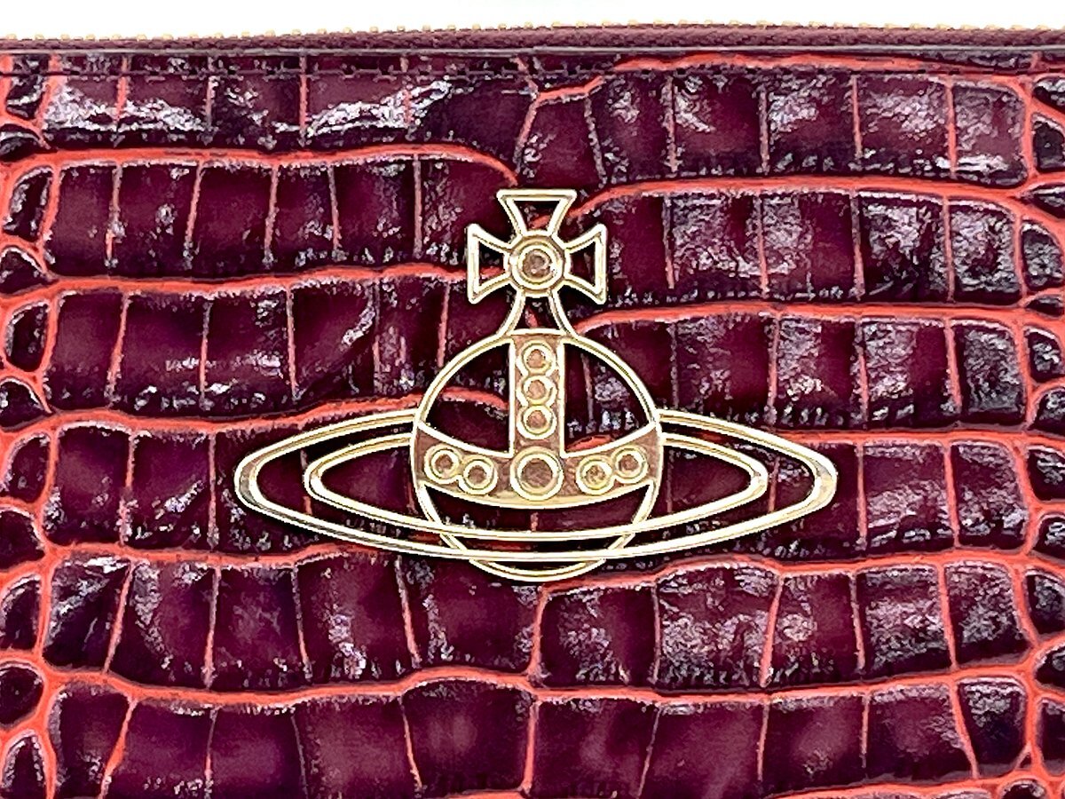 Vivienne Westwood/ヴィヴィアンウエストウッド オーブロゴ クロコ 型押しレザー 長財布 ラウンドファスナー ボルドー |