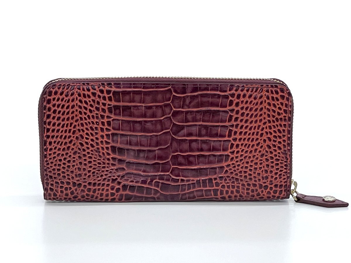 オーブロゴ クロコ 型押しレザー 長財布 ラウンドファスナー |
