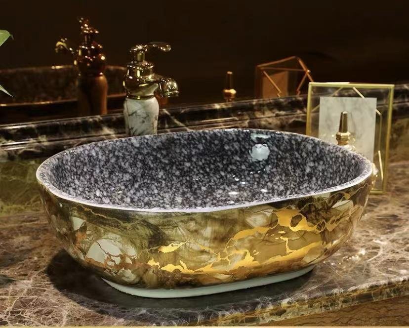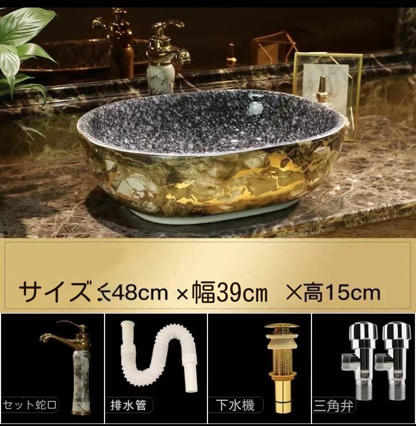 高品質★強くお勧め★豪華 洗面ボウルセット 陶器 洗面ボール 手水鉢 手洗器 手洗い鉢 洗面器 蛇口 排水金具付き