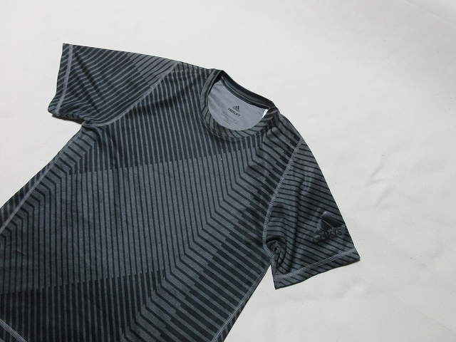 A-15★アディダス・CLIMALITE♪DQ2839/ストライプ柄/半袖Tシャツ(M)★