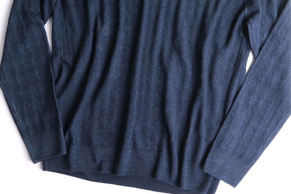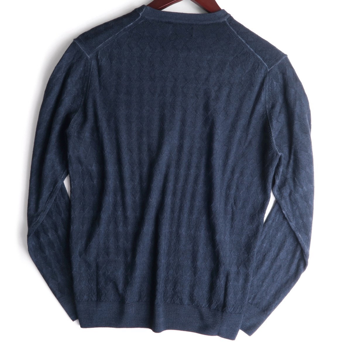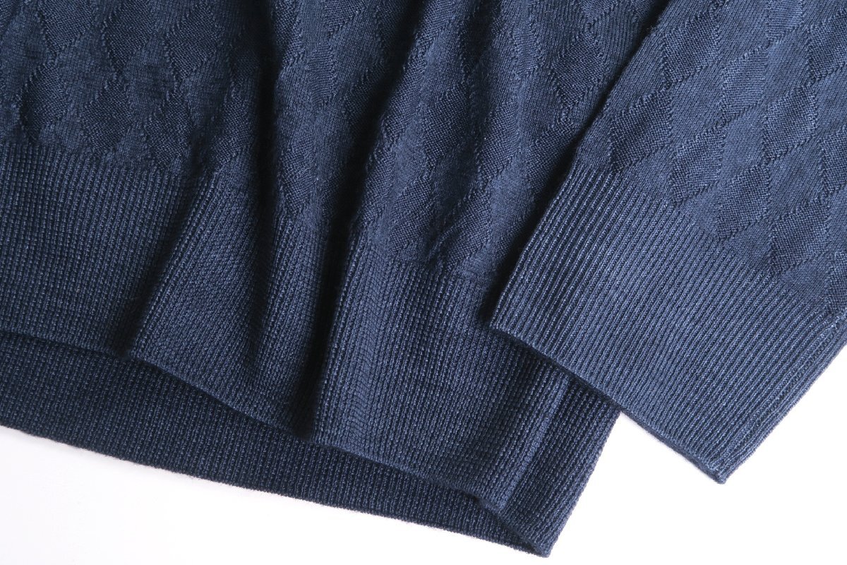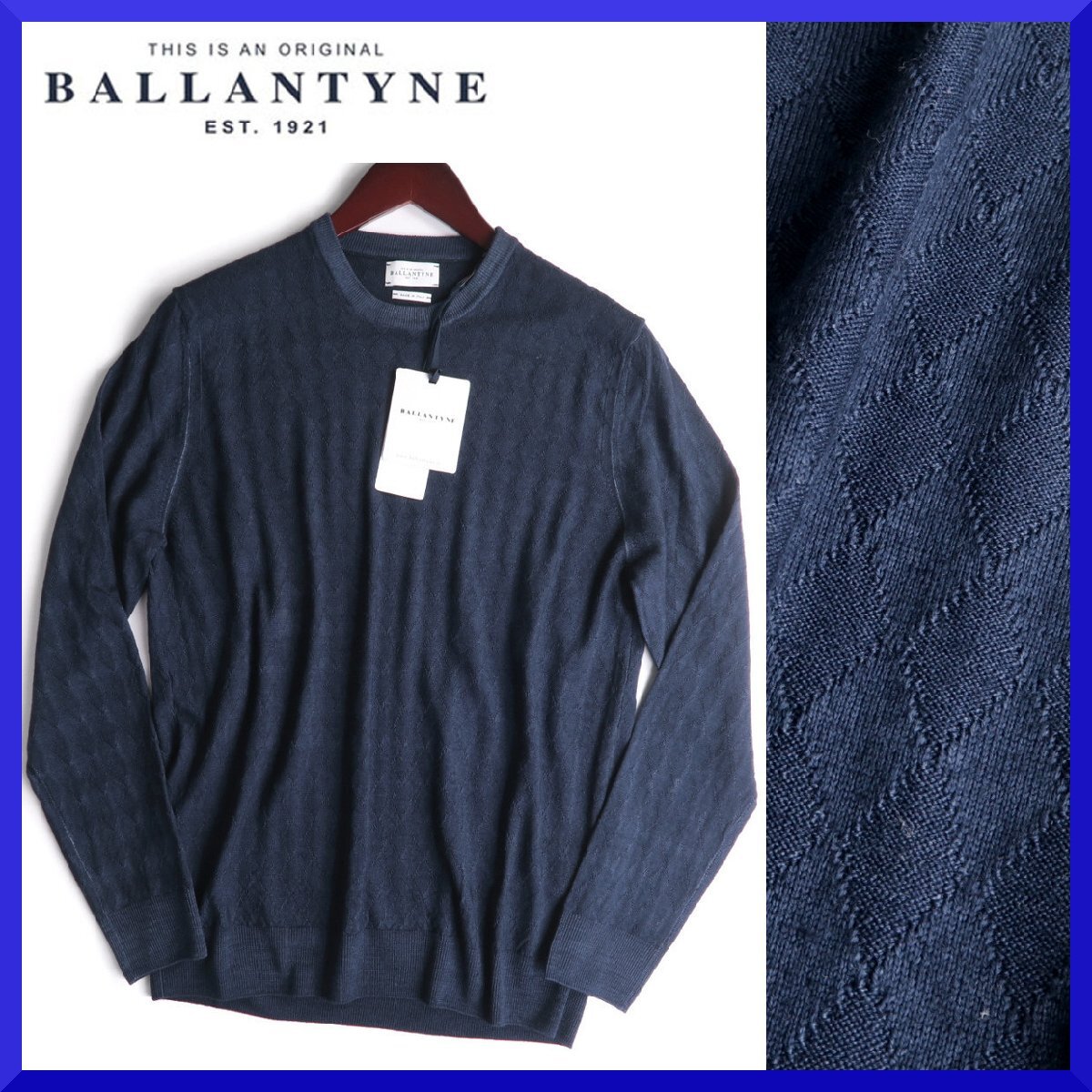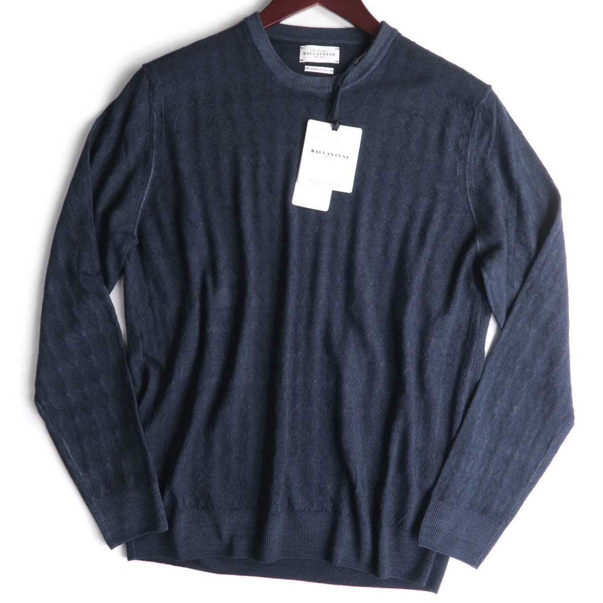 【参考価格8万】BALLANTYNE イタリア製 総柄アーガイル織りラナウールニットクルーネックセーター/メンズ/ネイビー/サイズUS:50(日本サイズM、Lくらい)/新品