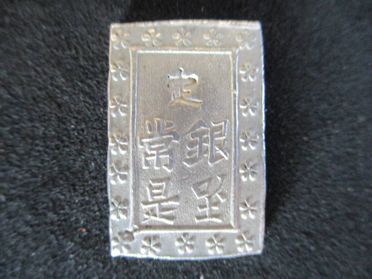 江戸時代の銀貨「庄内一分銀」(鶴岡座)です。