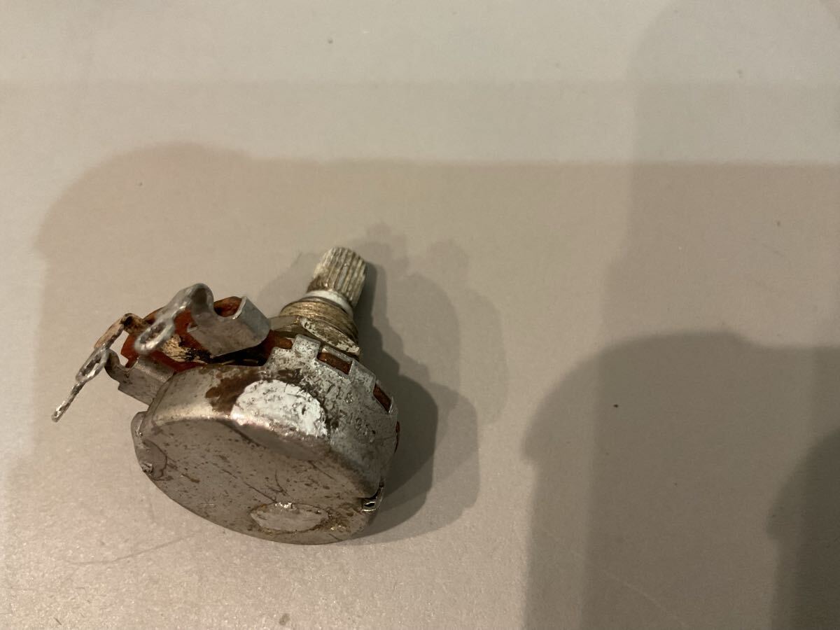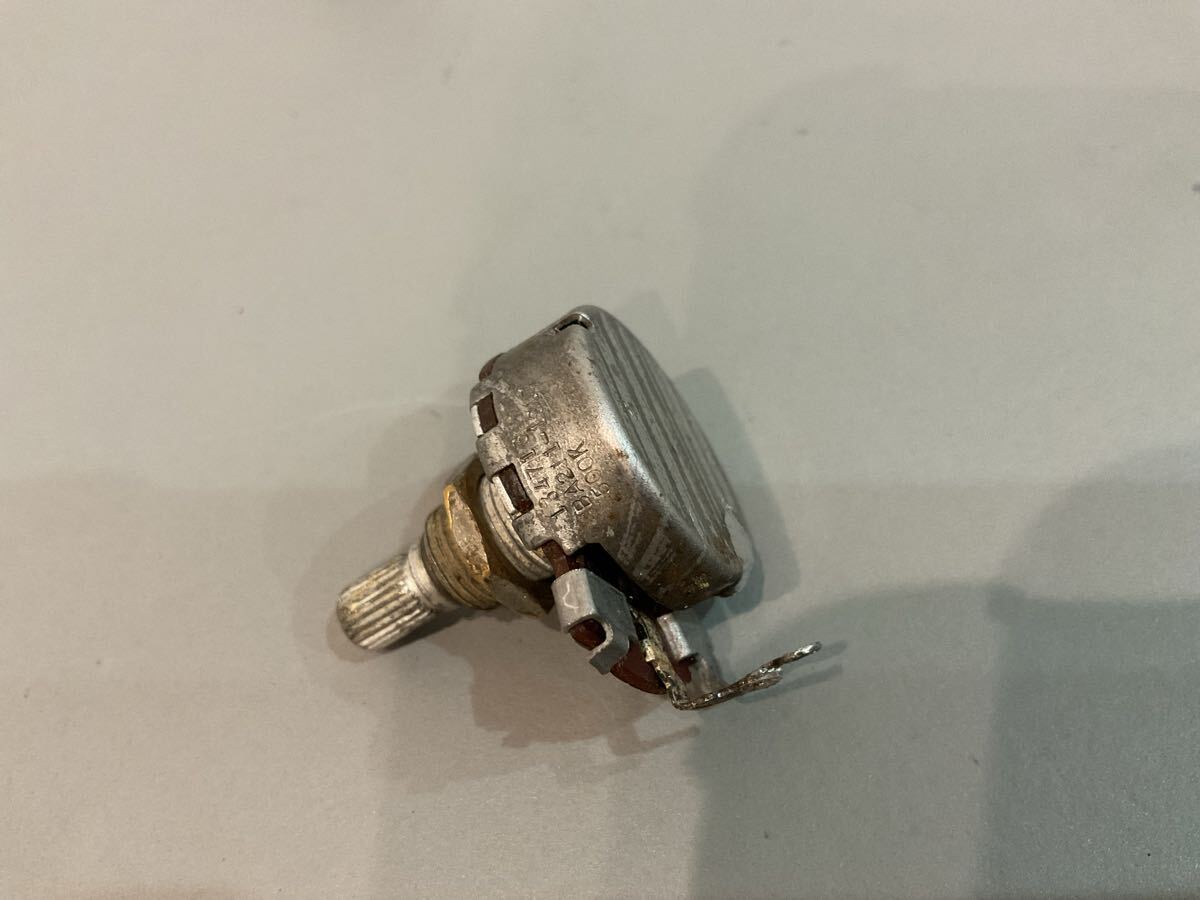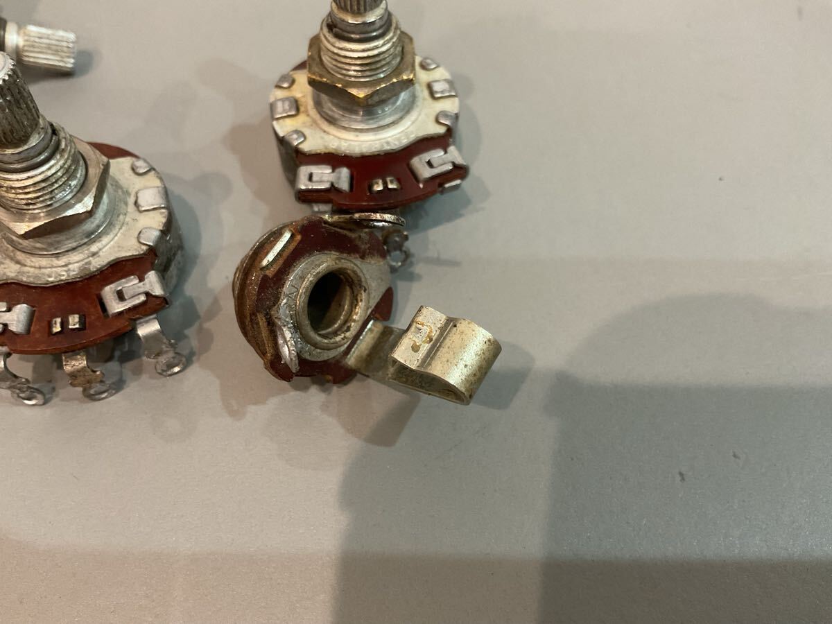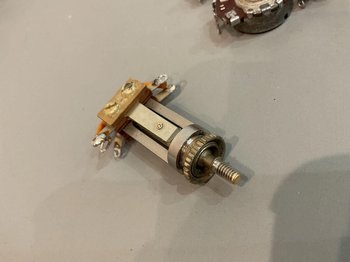 1957年製 CRL 500Kポット4個セットとセレクター ジャックです。珍しいシャフトが割れていないタイプ、長さなどは同じです。セレクター落とし込みナットはarea59です。少し長めのセレクターを通常のサイズにしております。 スイッチクラフト表記無しのセレクターです。134 7 13が2個と 134718が2個です。