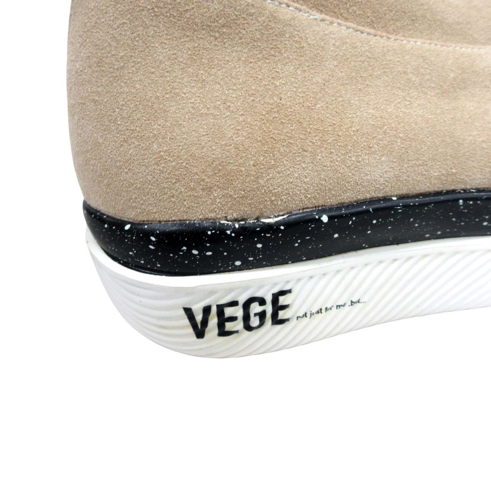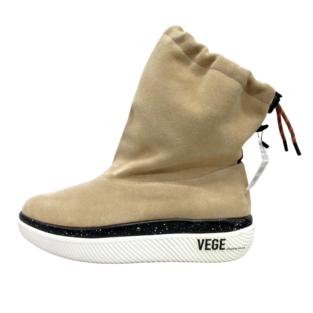 くしゅくしゅしたデザインがかわいいスポーツMIXのブーツ。履き口には伸縮性のあるゴム紐を使用しており調整可能。ソールはとても柔らかく、ヘリンボーン柄に『VEGE』のロゴがアクセント!