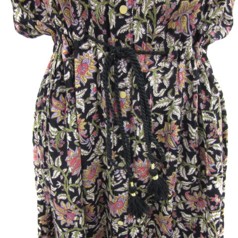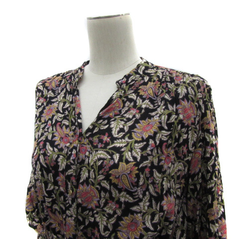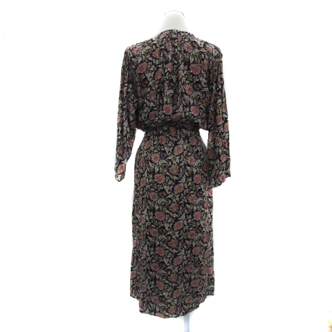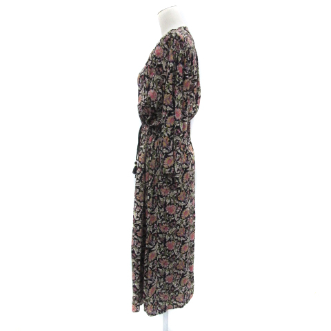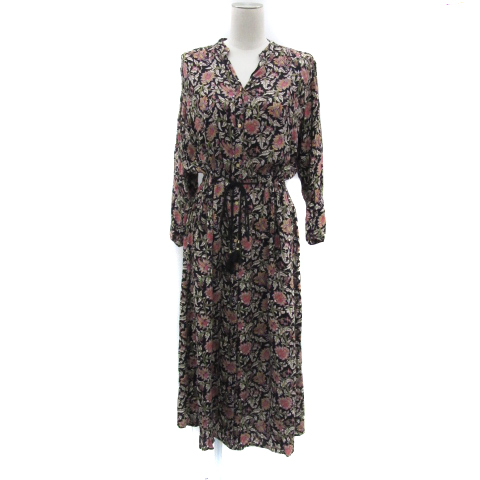ジャーナルスタンダード レリューム シャツワンピース ロング丈 長袖 スリットネック 花柄 タッセルリボンベルト付き F 黒 レディース
