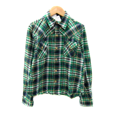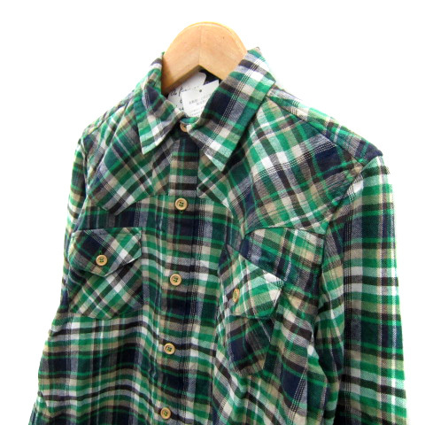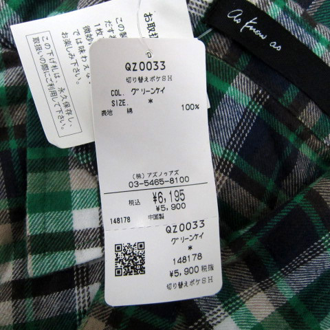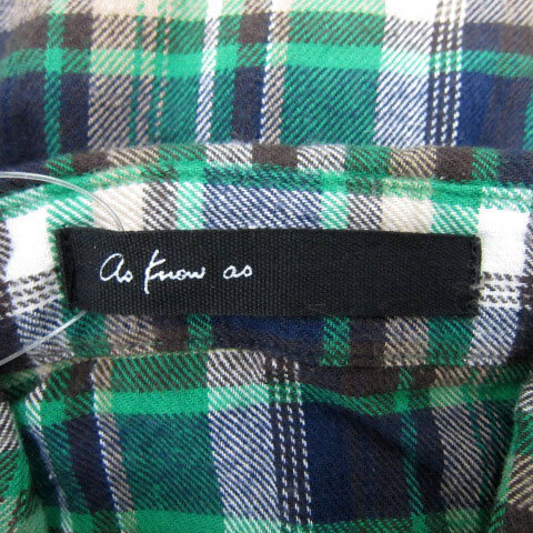 未使用品 アズノウアズ as know as 切替ポケットシャツ カジュアルシャツ 長袖 チェック柄 マルチカラー 緑 グリーン /SY9 レディース