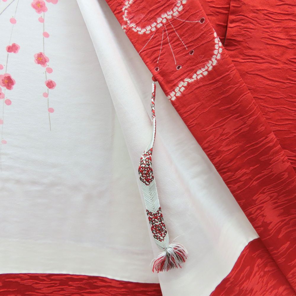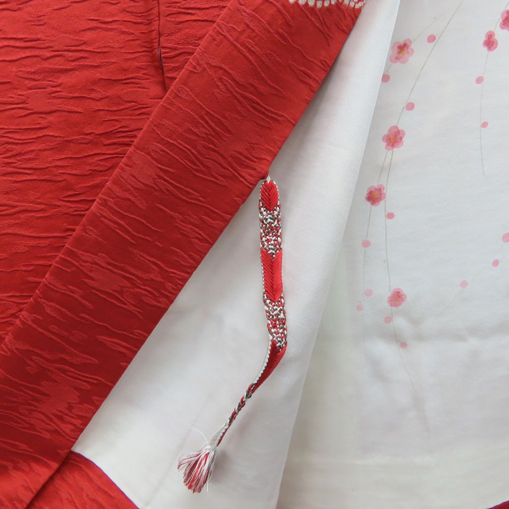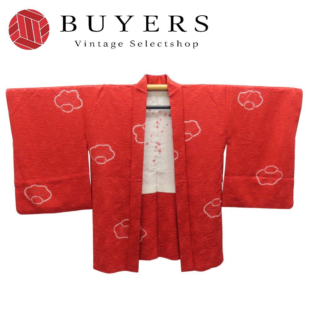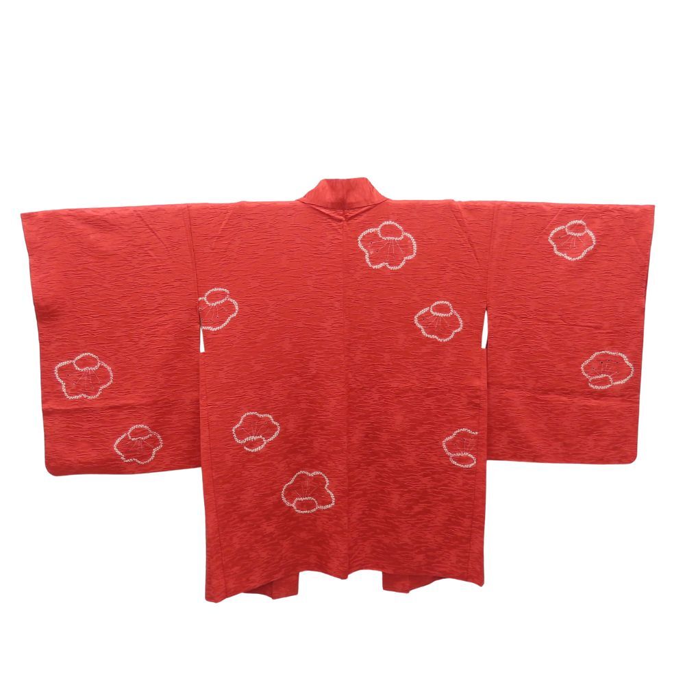 中古 羽織 羽織紐つき 正絹(金銀糸除く) レッド系 ホワイト 絞り 和装 呉服 和服 きもの レディース 女性