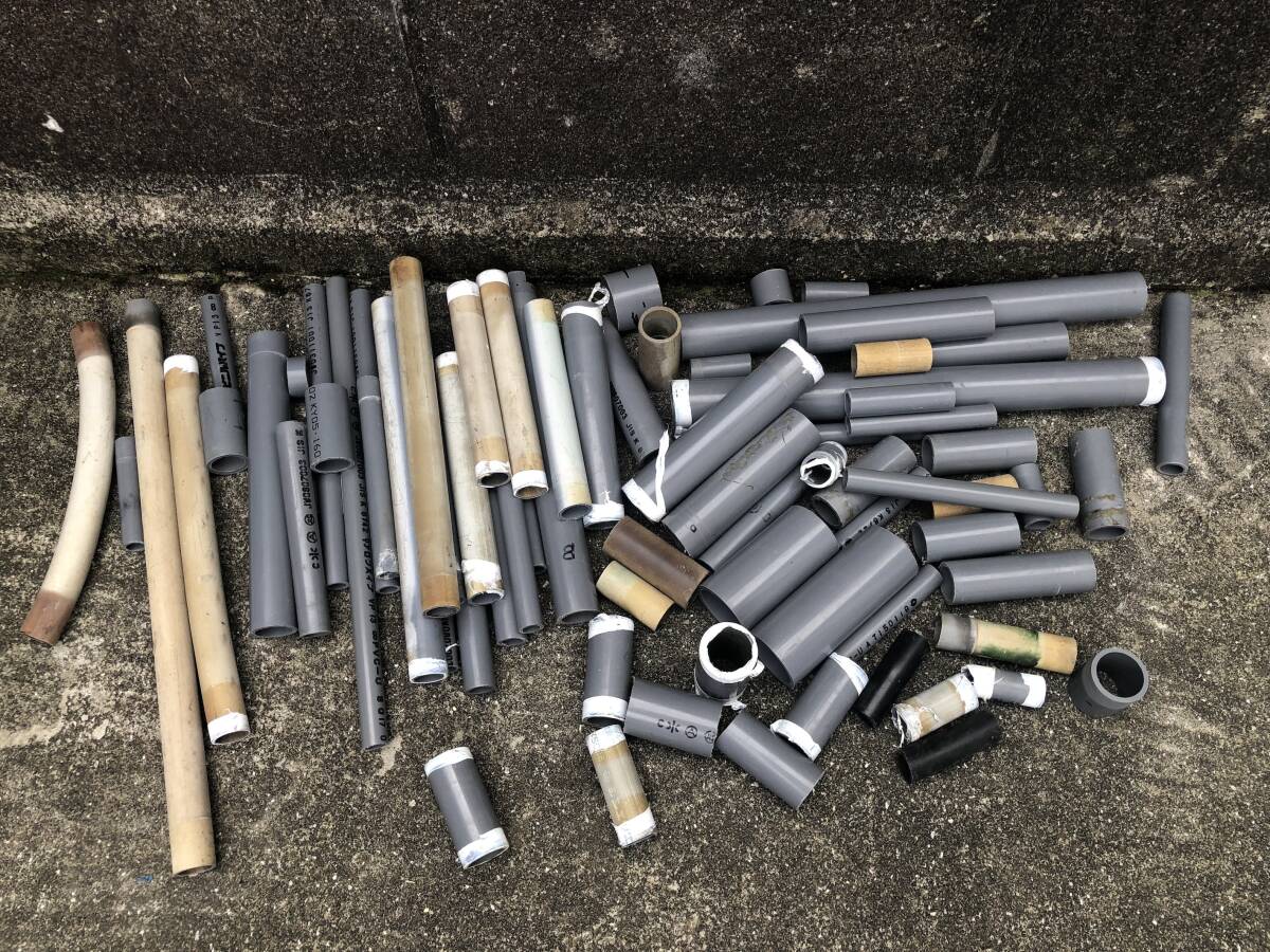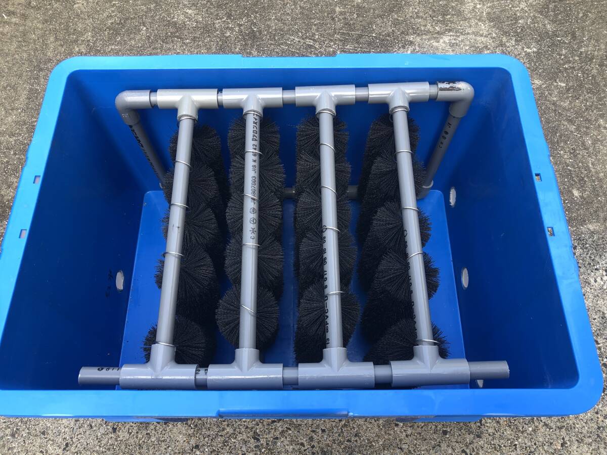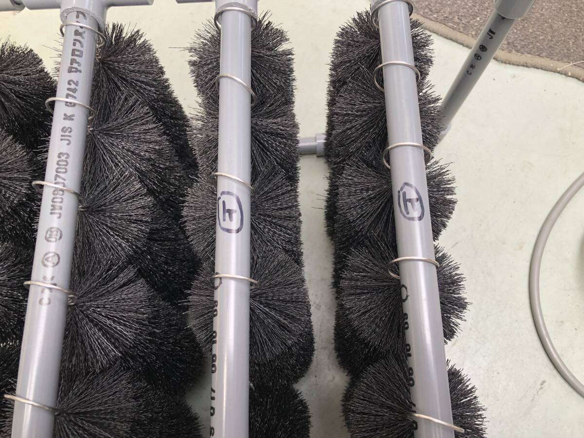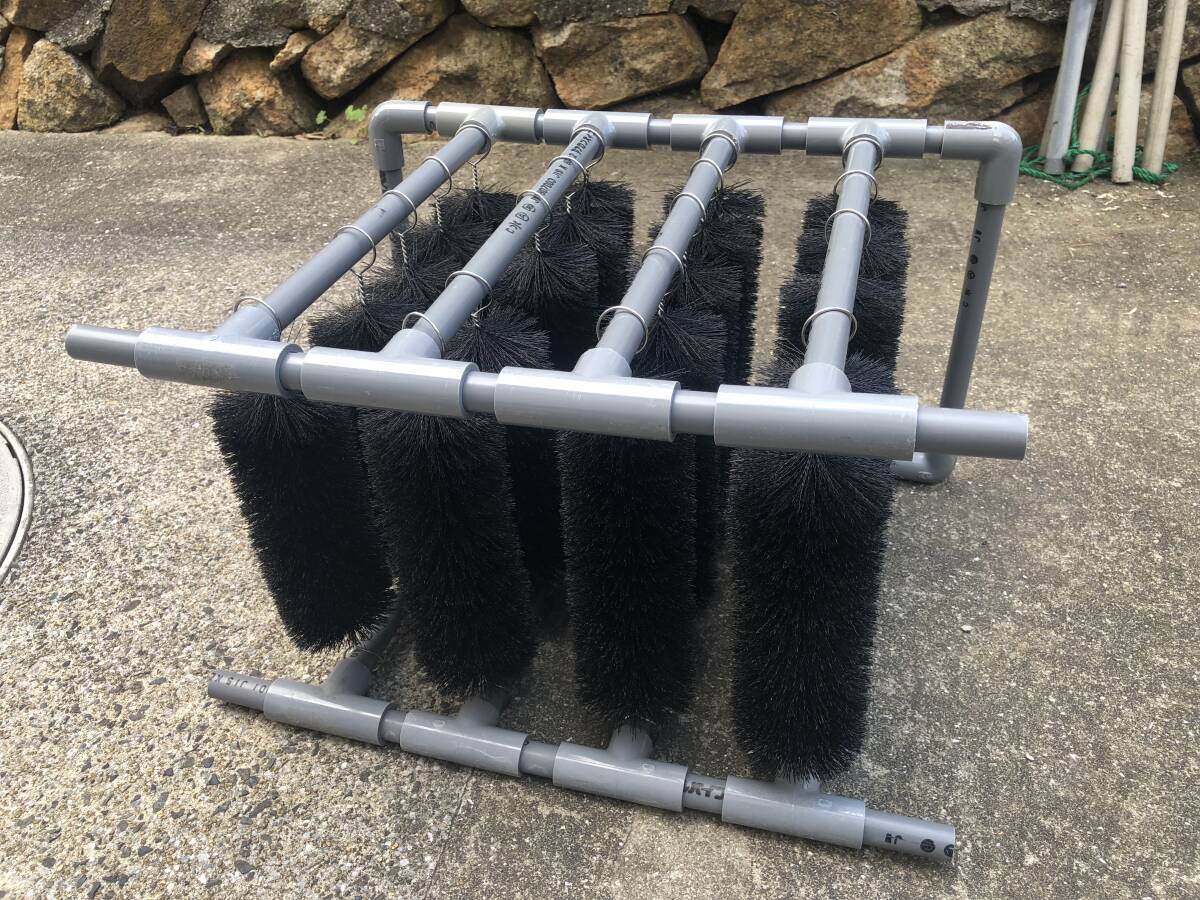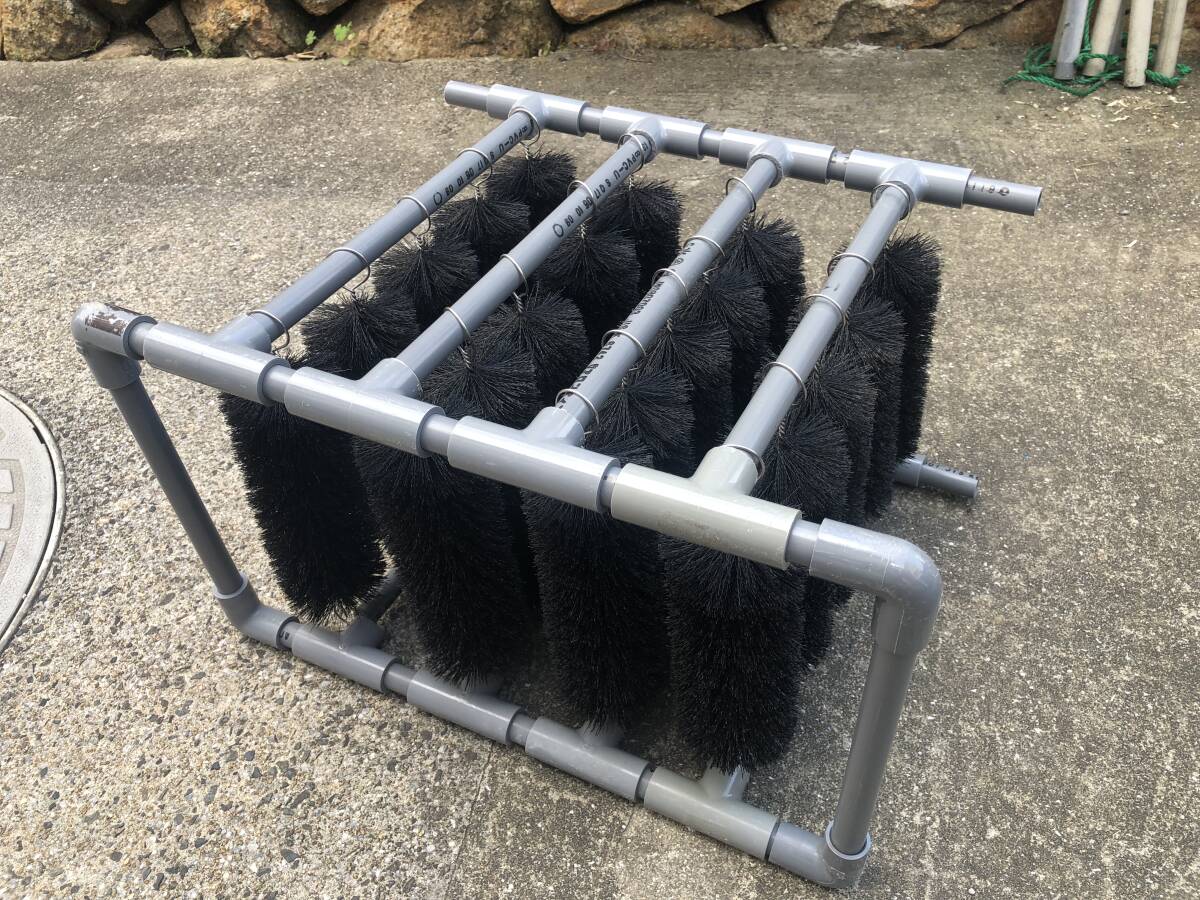 ロールブラシ20本とブラシを支えるVPパイプのフレーム、水中ポンプ2個、VPパイプの継手多数が出品になります。