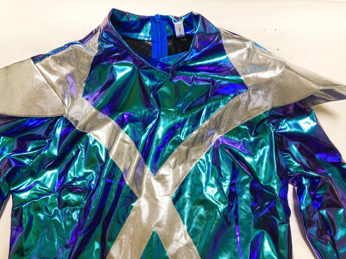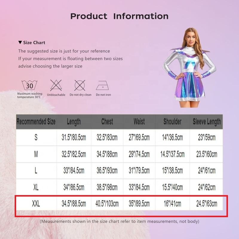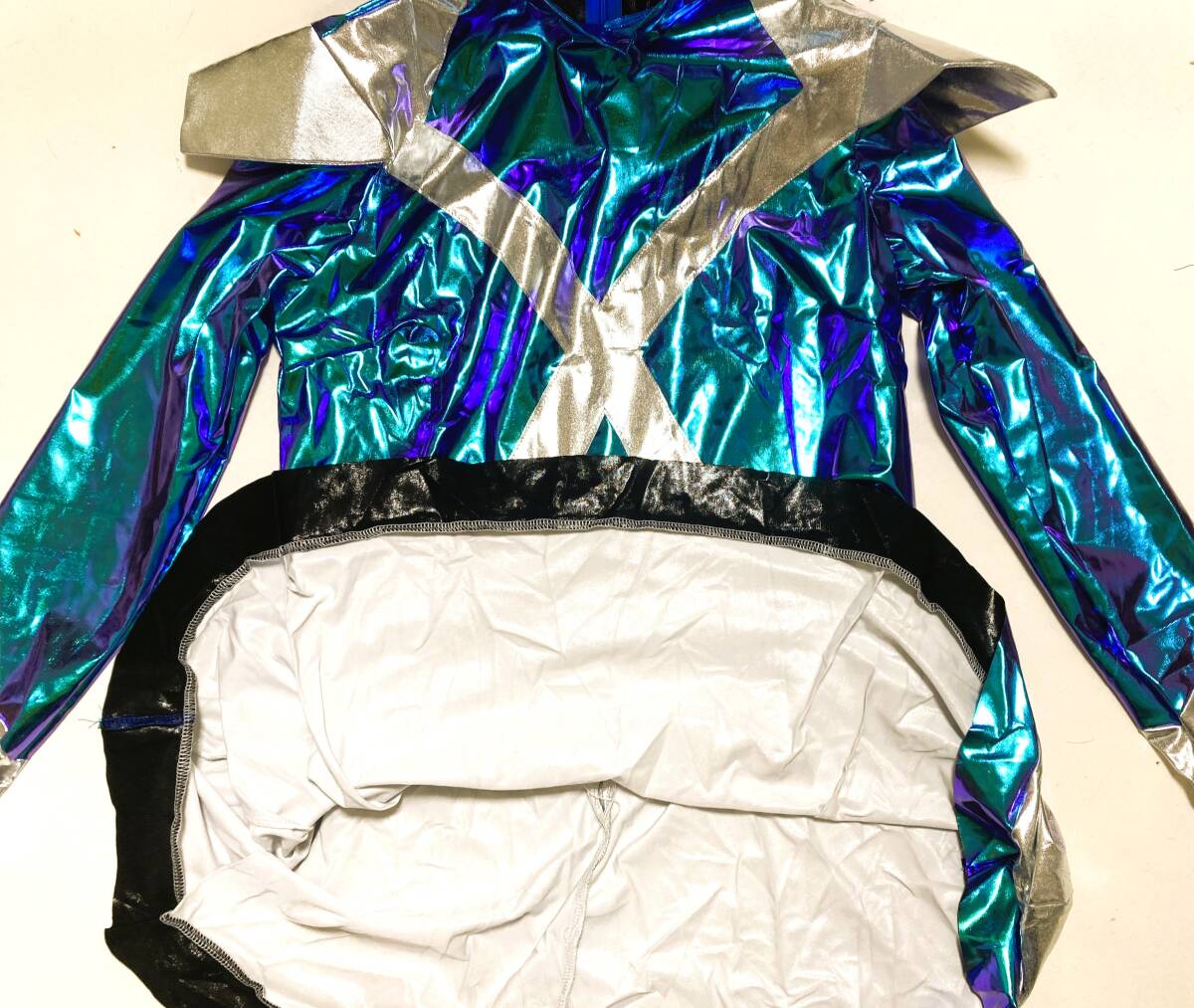 超新作 特大2XL/シルバー イベント コスチューム ホログラム スペース戦士光沢Aラインロングスリーブ コスプレ ステージ衣装 IEFIEL社製