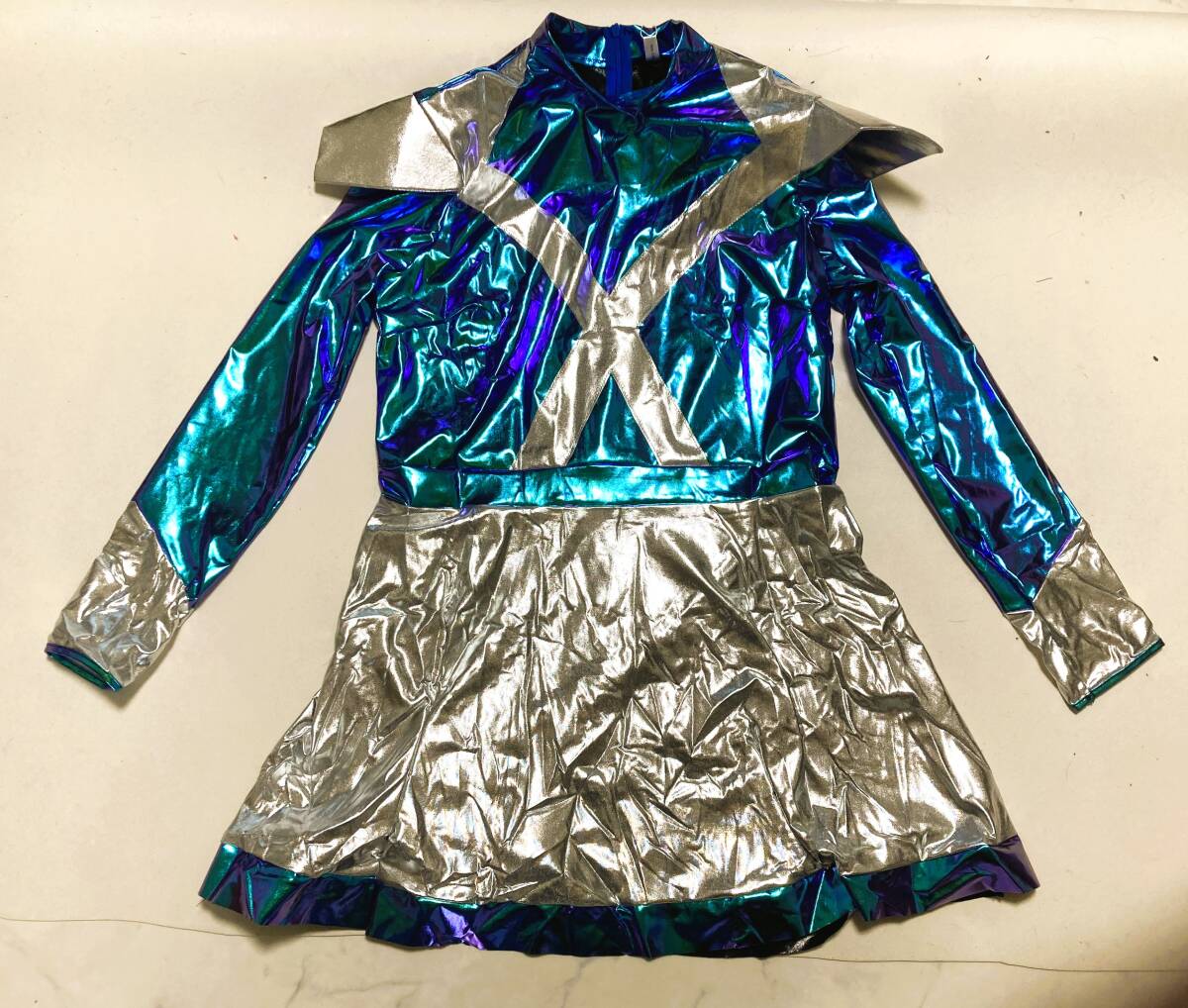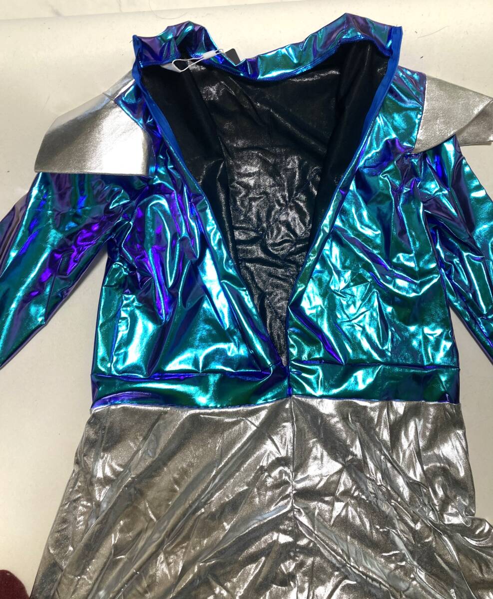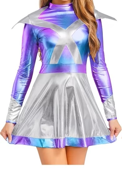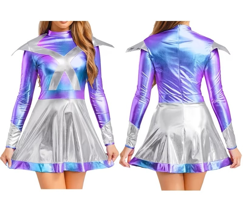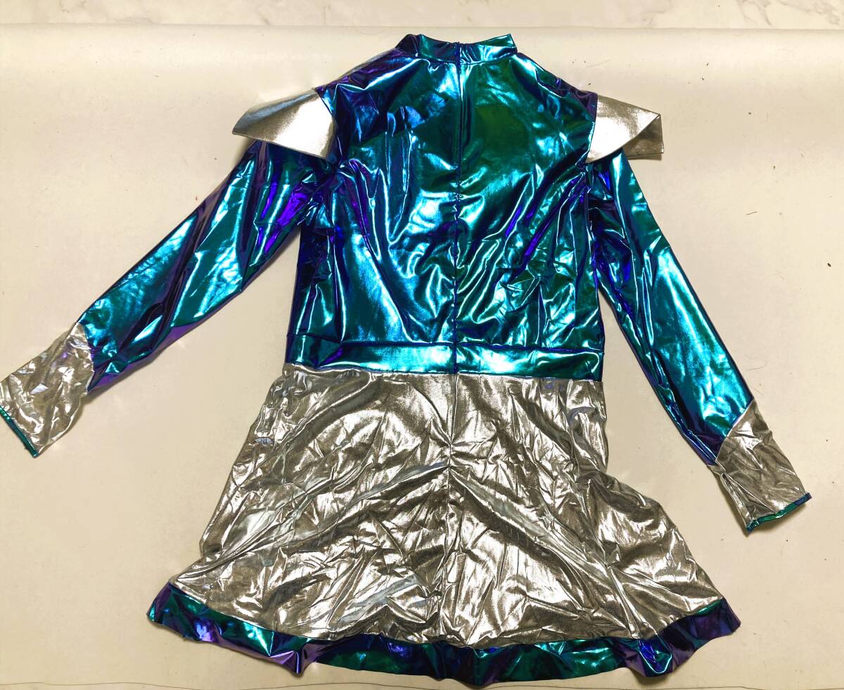 レディースエイリアン宇宙飛行士コスプレドレスメタリック光沢のあるAラインドレススペース女性戦士ドレスパーティーイベントコンペティションコスチューム