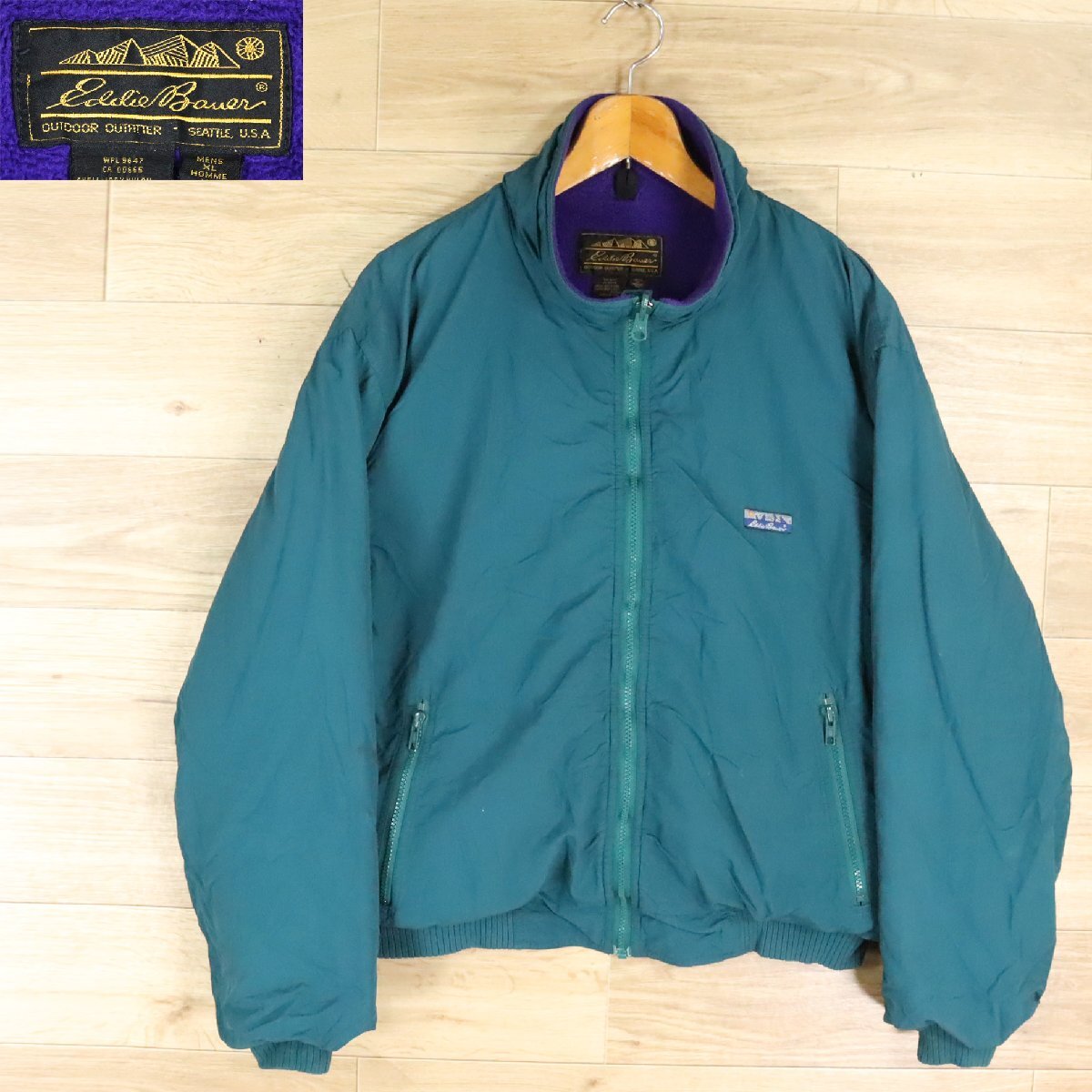 B6Y/D8.7-3 80s~ USA製 Eddie Bauer エディーバウアー ウォームアップジャケット ナイロンジャケット 裏フリース メンズ XLサイズ
