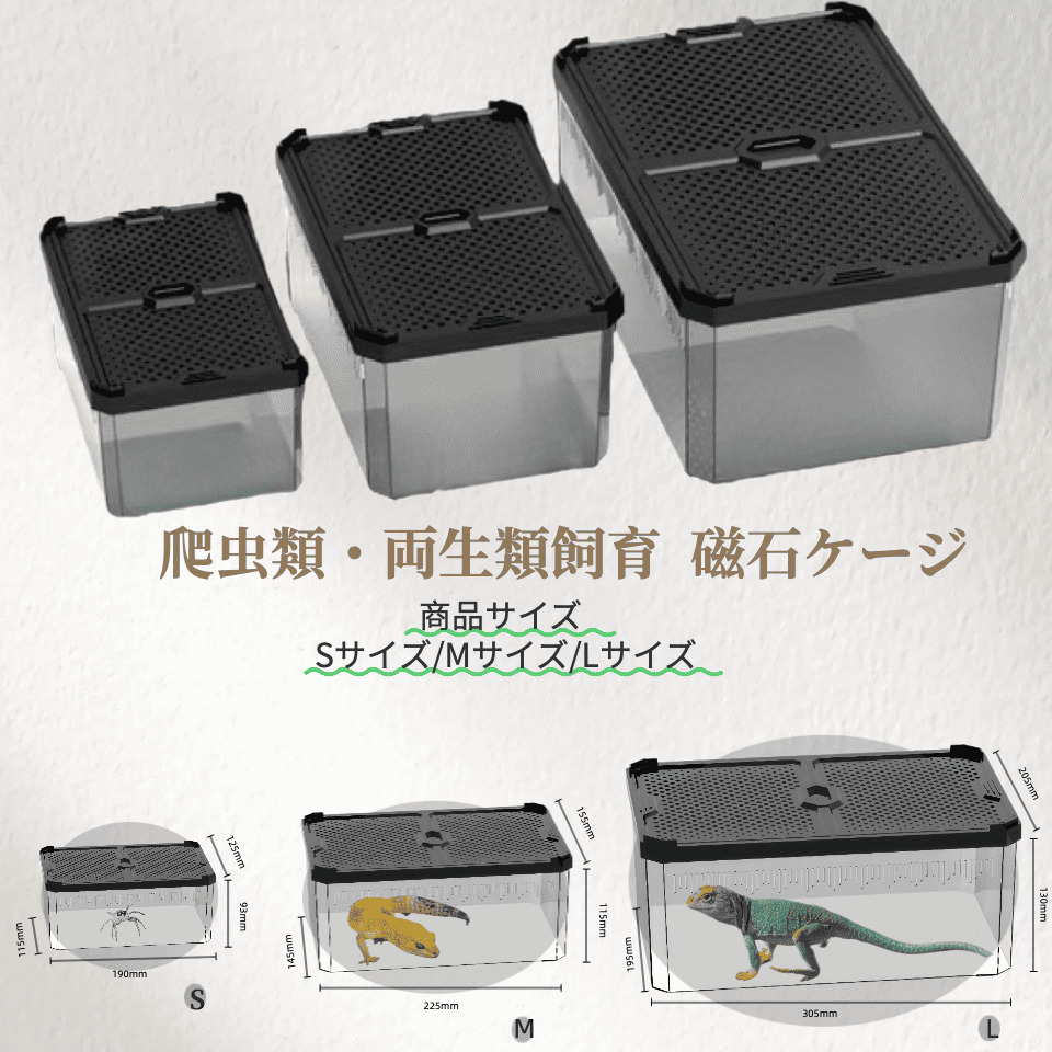 Sサイズ爬虫類、両生類飼育 高硬度 プラスチック 磁石ケージ 空気穴ありケース リクガメ ヤモリ トカゲ レオパード ヘビ リス ヤドカリ