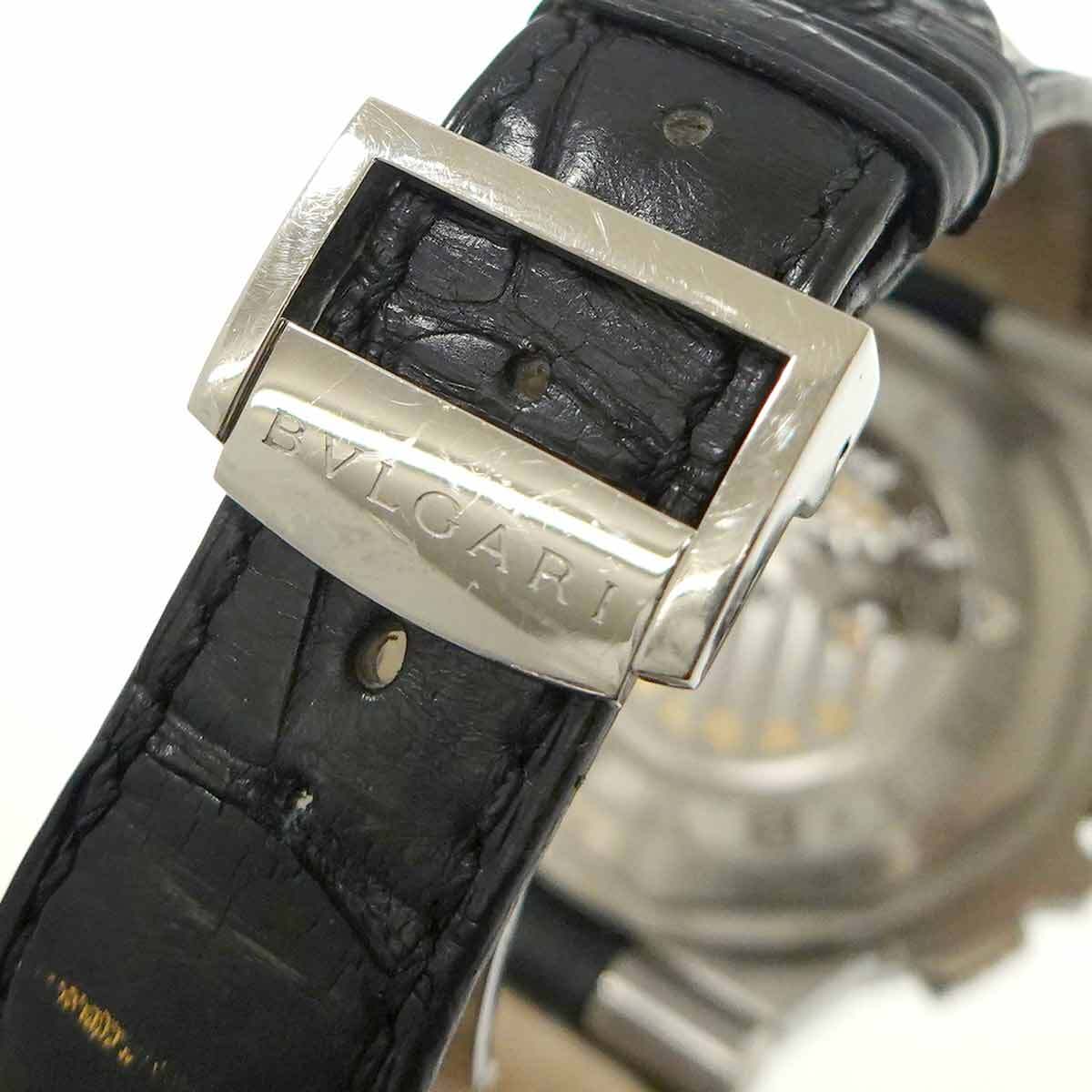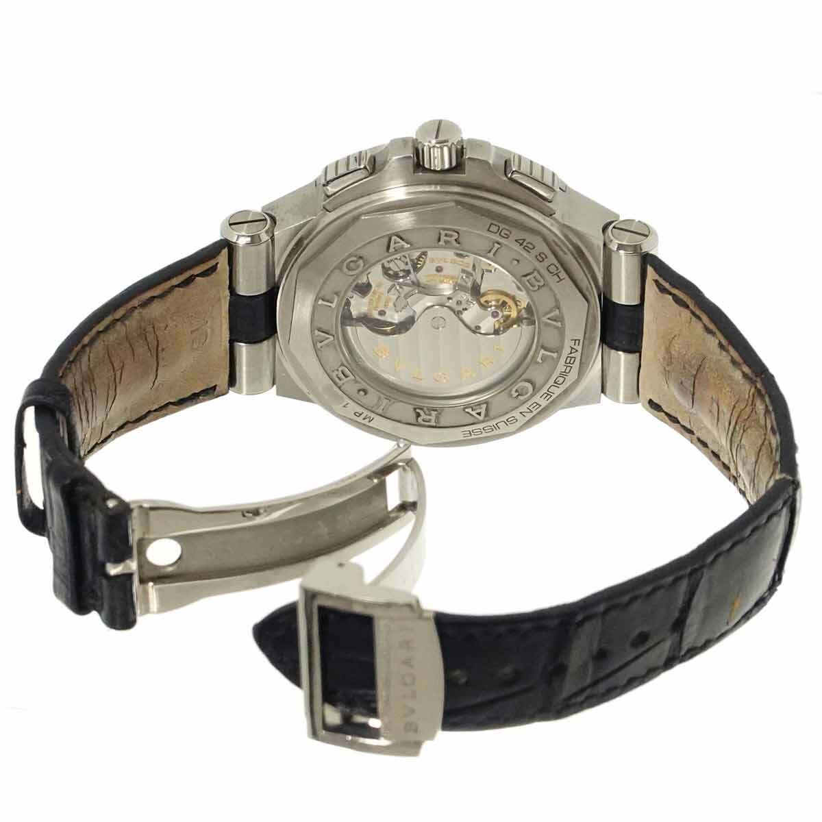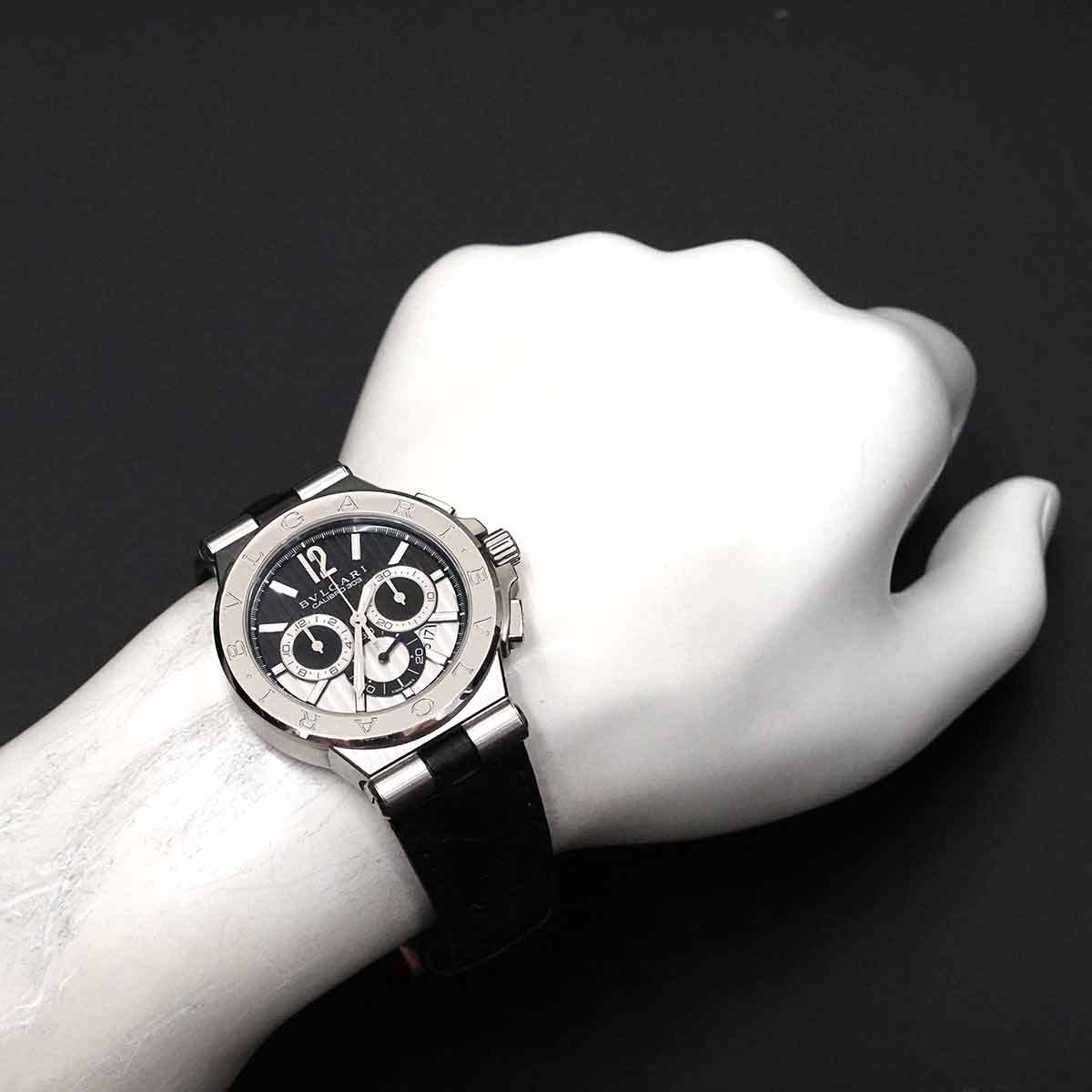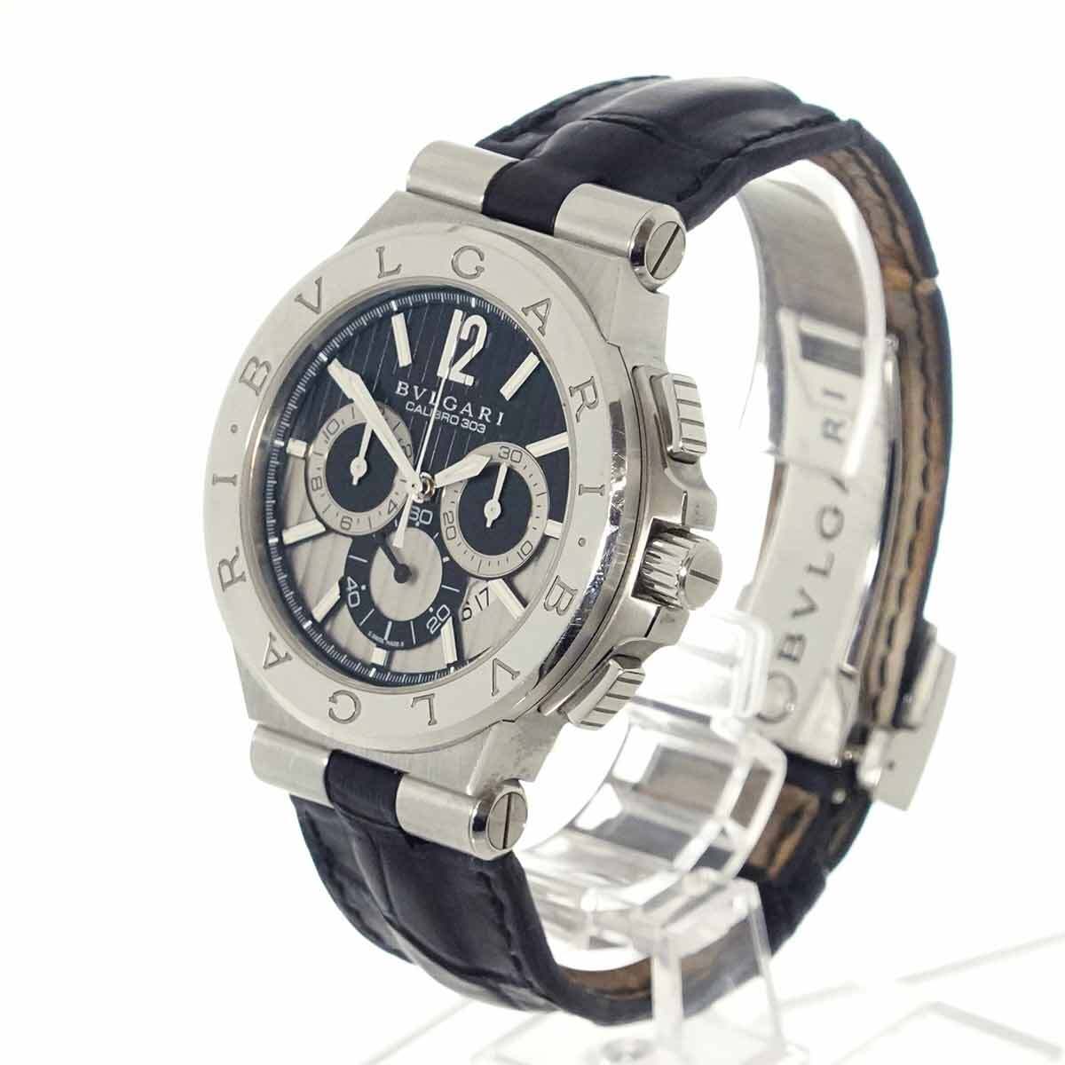 商品概要 | ブルガリから2008年にディアゴノ誕生20周年を記念して発売された『ディアゴノ・カリブロ 303』クロノグラフメンズ腕時計です。シースルーバックからはフレデリックピゲ製クロノをベースにしたキャリバー“BVL303”を眺めることが出来ます♪ |