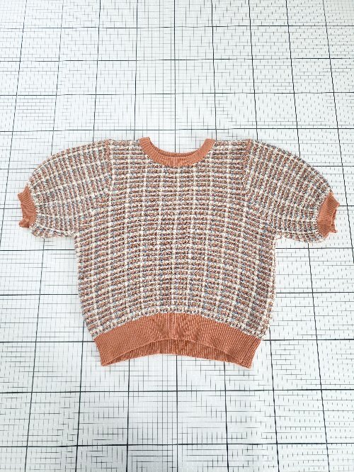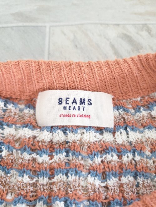 ◇ ⊂ BEAMS HEART ビームスハート チェック柄 半袖 ニットソー サイズ表記なし ブラウン系 レディース E