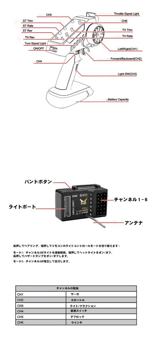 チャンネル数:6CH 入力:単三*3(別売り) 制御距離:約200m