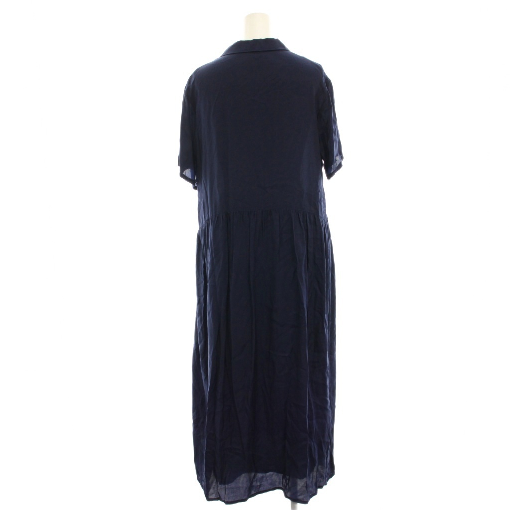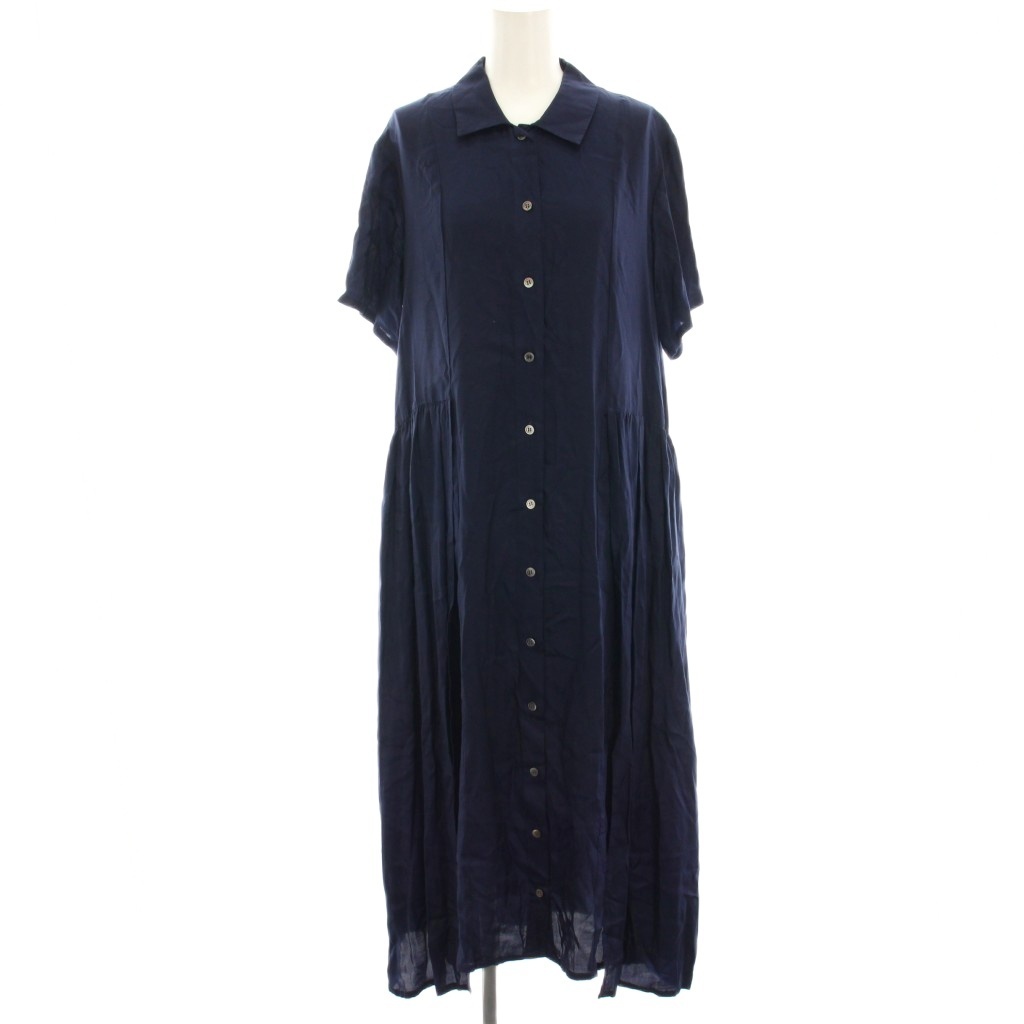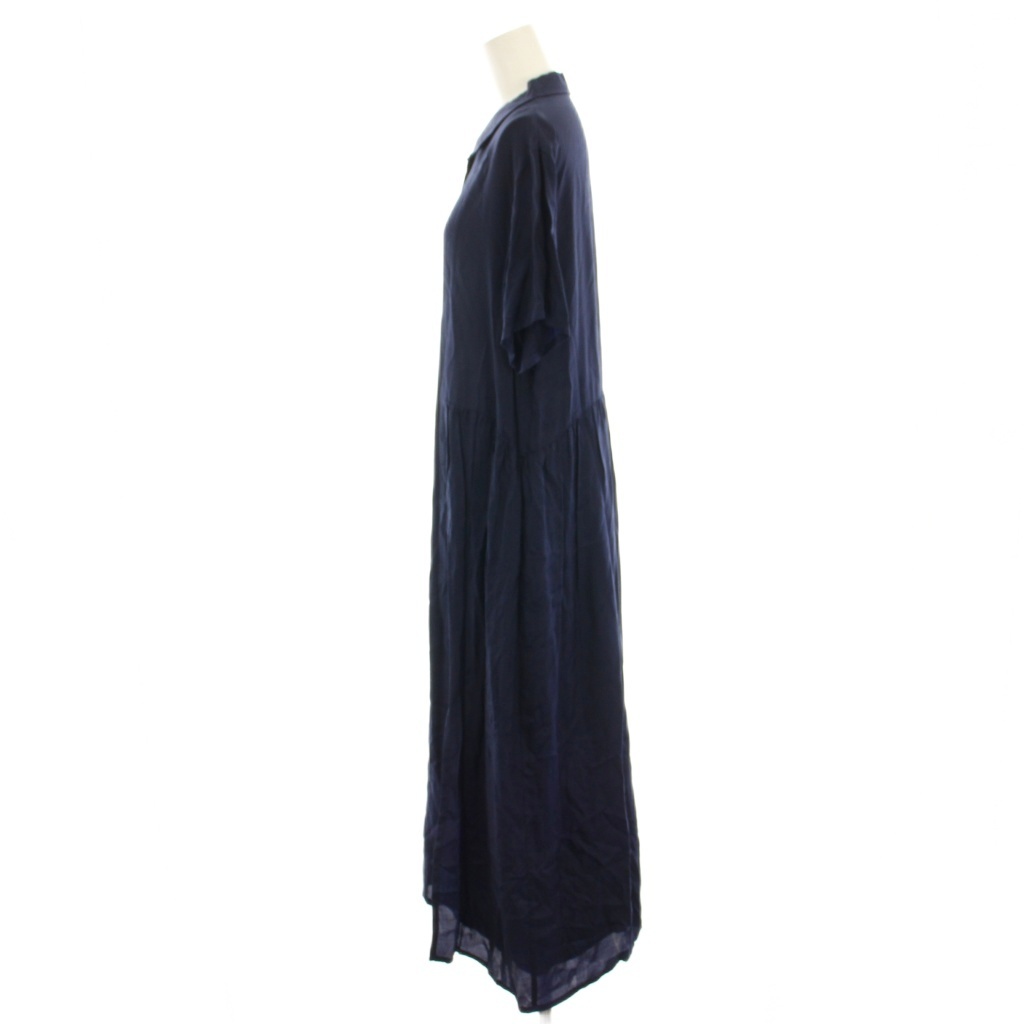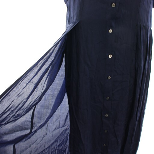 ヌーイ nooy シャツワンピース ロング マキシ フレア ギャザー 半袖 紺 ネイビー /HN レディース