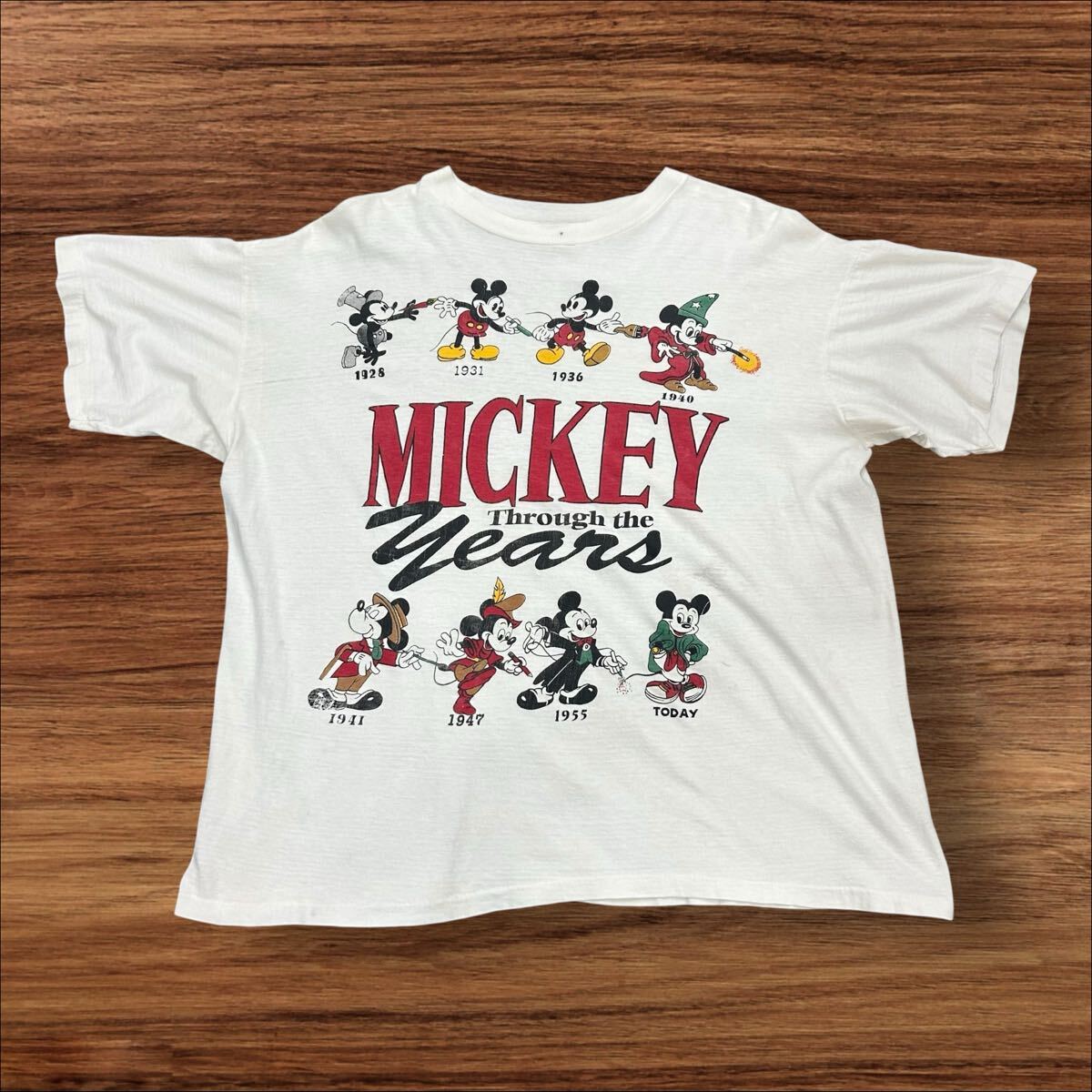 希少 激レア 当時物 Disney Vintage Bootleg ディズニー ヴィンテージ ブートレグ 「MICKEY Through years」プリント Tシャツ XL