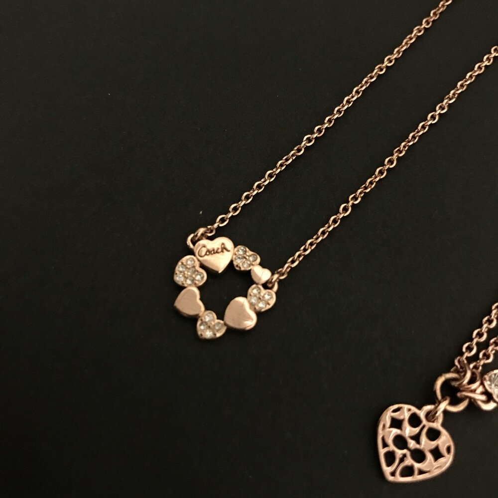 1円 美品 COACH コーチ ラインストーン ハートモチーフ 96713 ネックレス リング レディース アクセサリー ゴールド /ZX0876