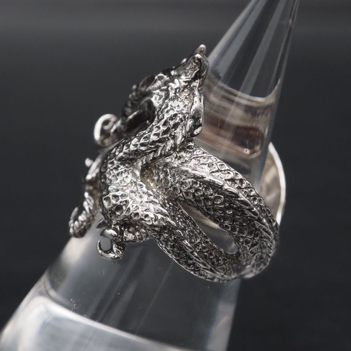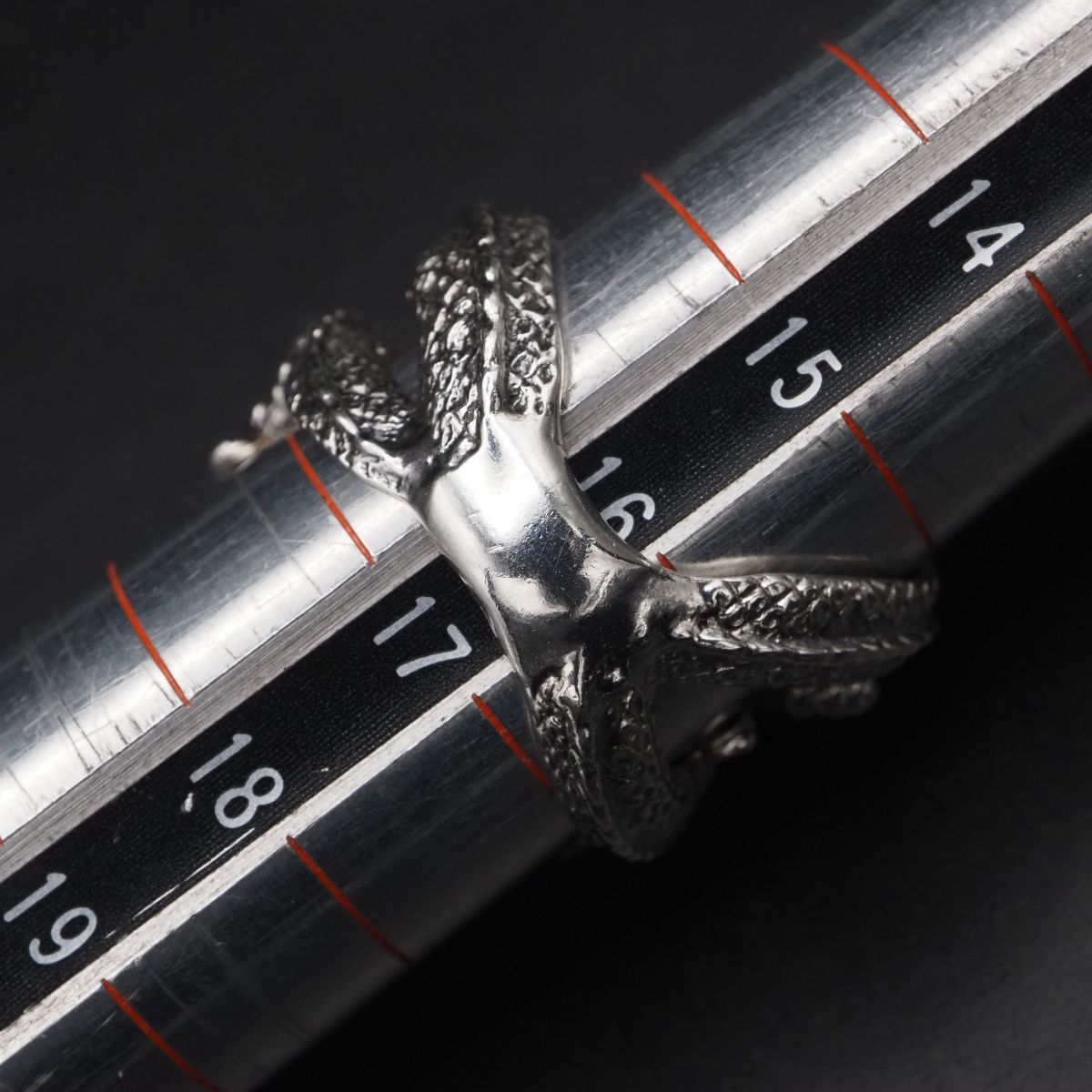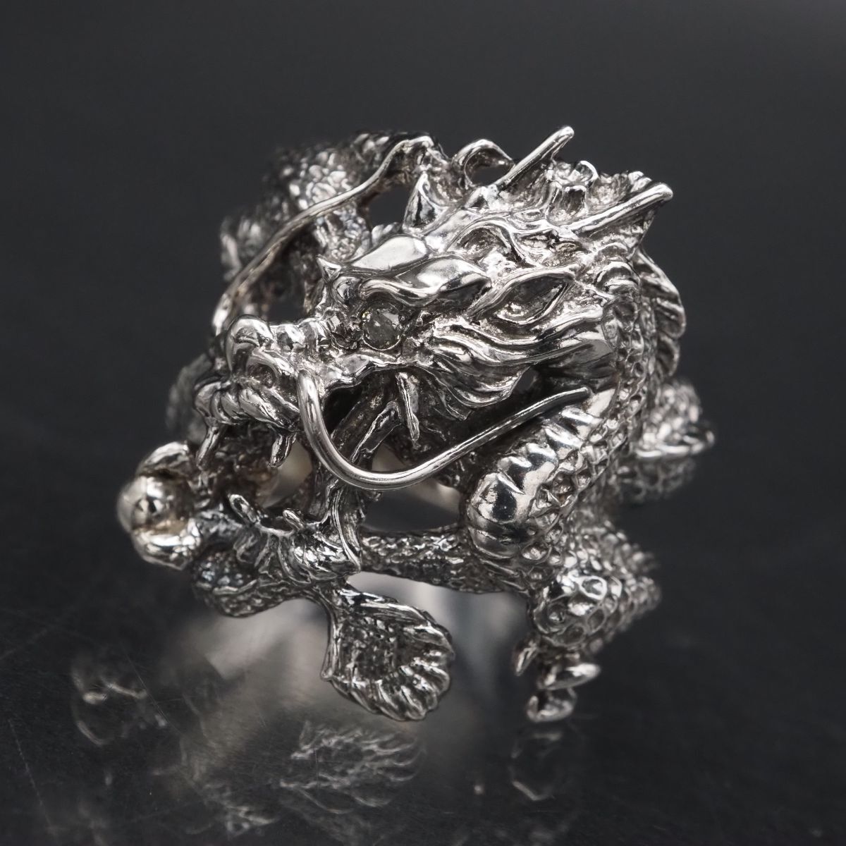 F834 ダイヤモンド 0.05ct SILVER刻印 リング 大ぶり 龍 ドラゴン デザイン シルバー 指輪 4月誕生石 16号