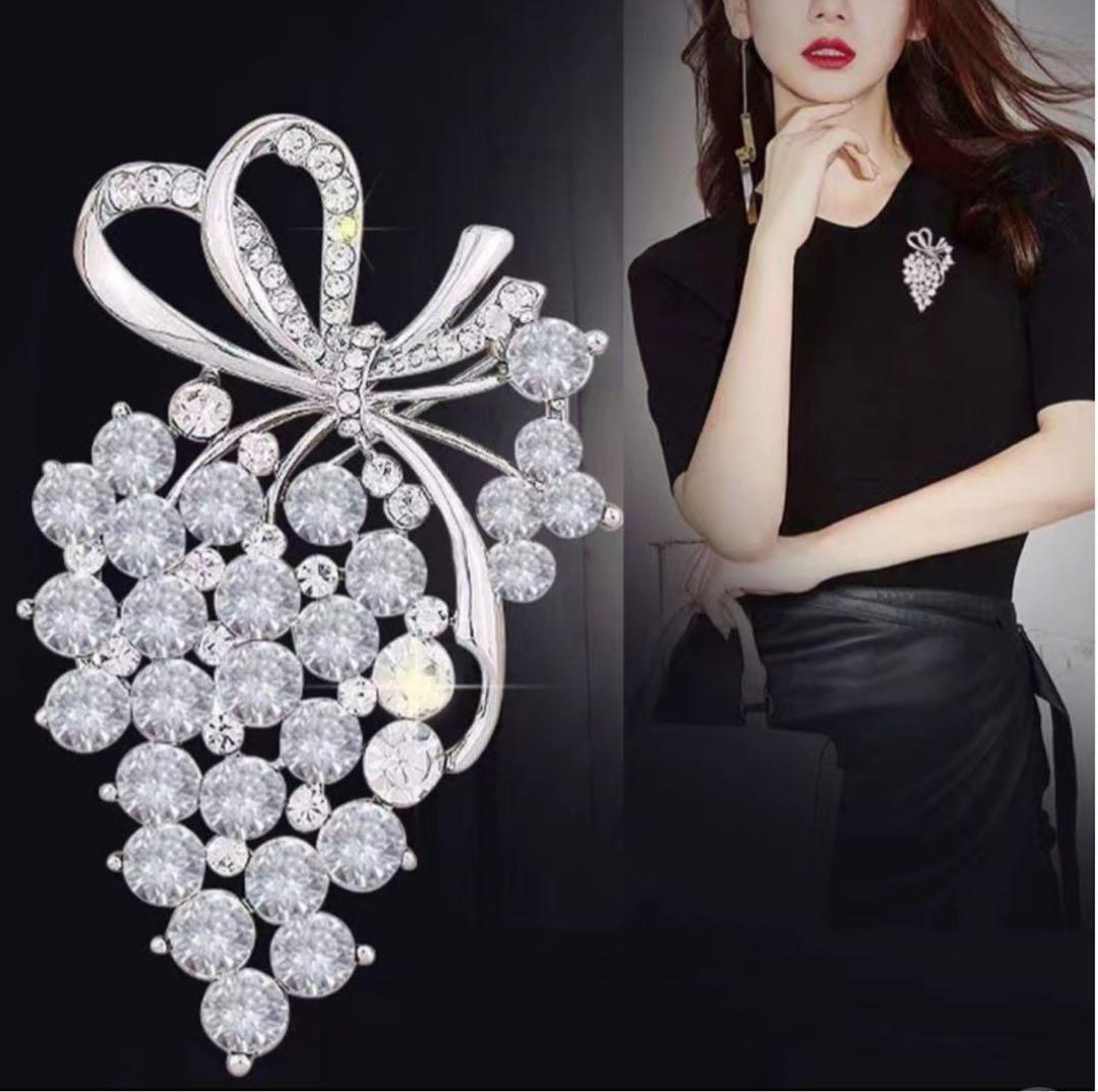 ブドウリボンブローチ クリスタル アンティーク