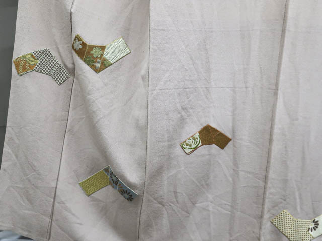 リサイクル商品のため、全体にしみ汚れヤケがございますので、リメイク素材としてお使い下さい。 地色は くすみピンクです。 1枚目の画像が近いお色かと思われます。 素材は正絹です。 |