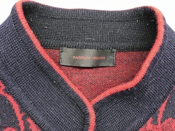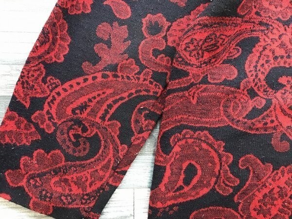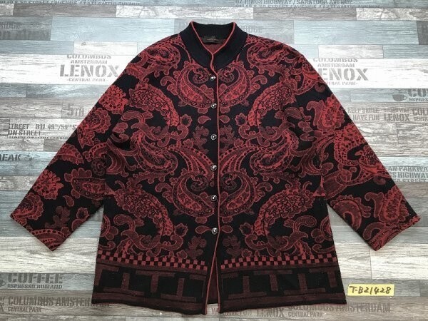 FASHION SEASON レディース ペイズリー柄 ニットジャケット 黒赤 です。