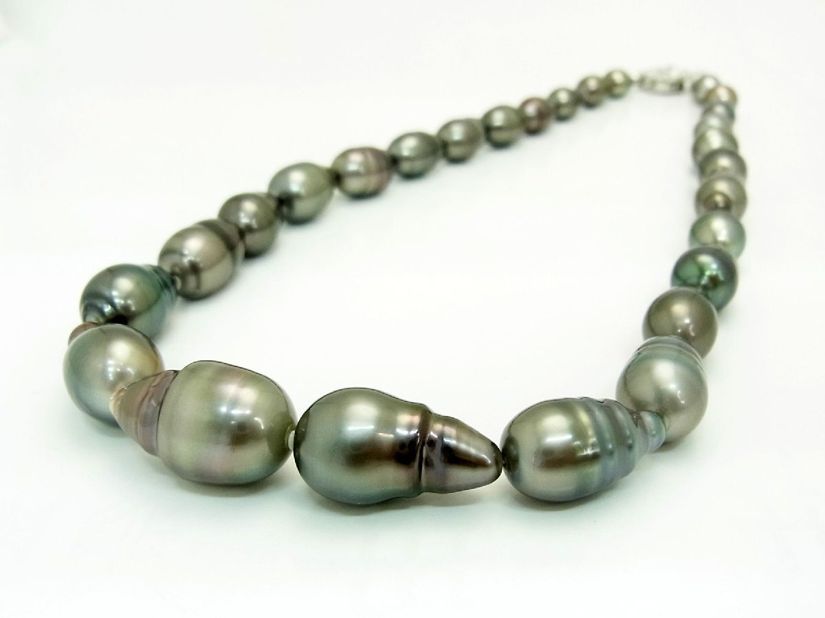 お手頃価格なので気軽にガンガン使える タヒチ黒蝶真珠8.3~13.3ミリ バロック珠 ネックレス 卸価格 動画あり 送料込
