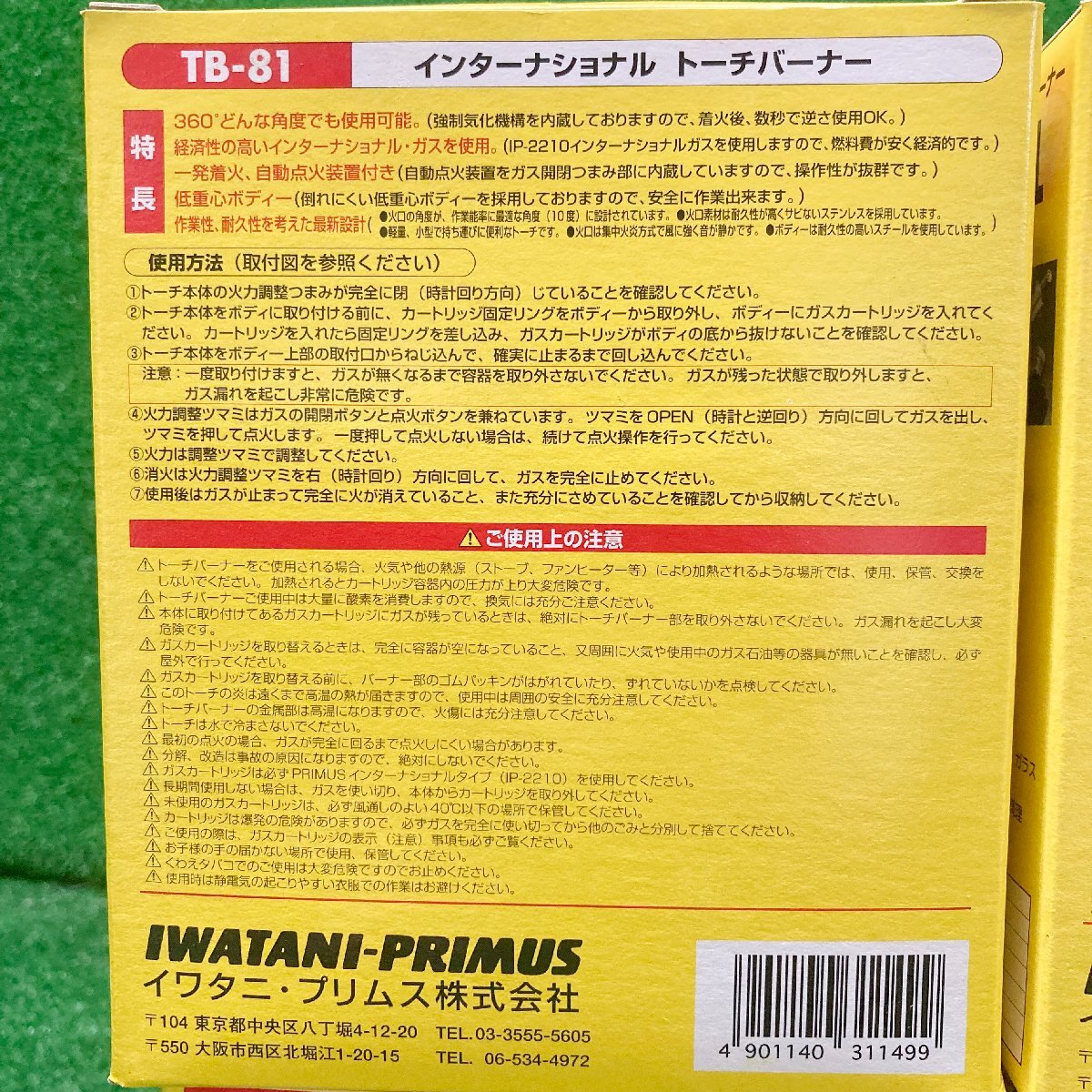 商品 | イワタニ インターナショナル バーナートーチ PRMUS TB-81 IP-2210カートリッジ付き ★4個セット ☆新品☆ |