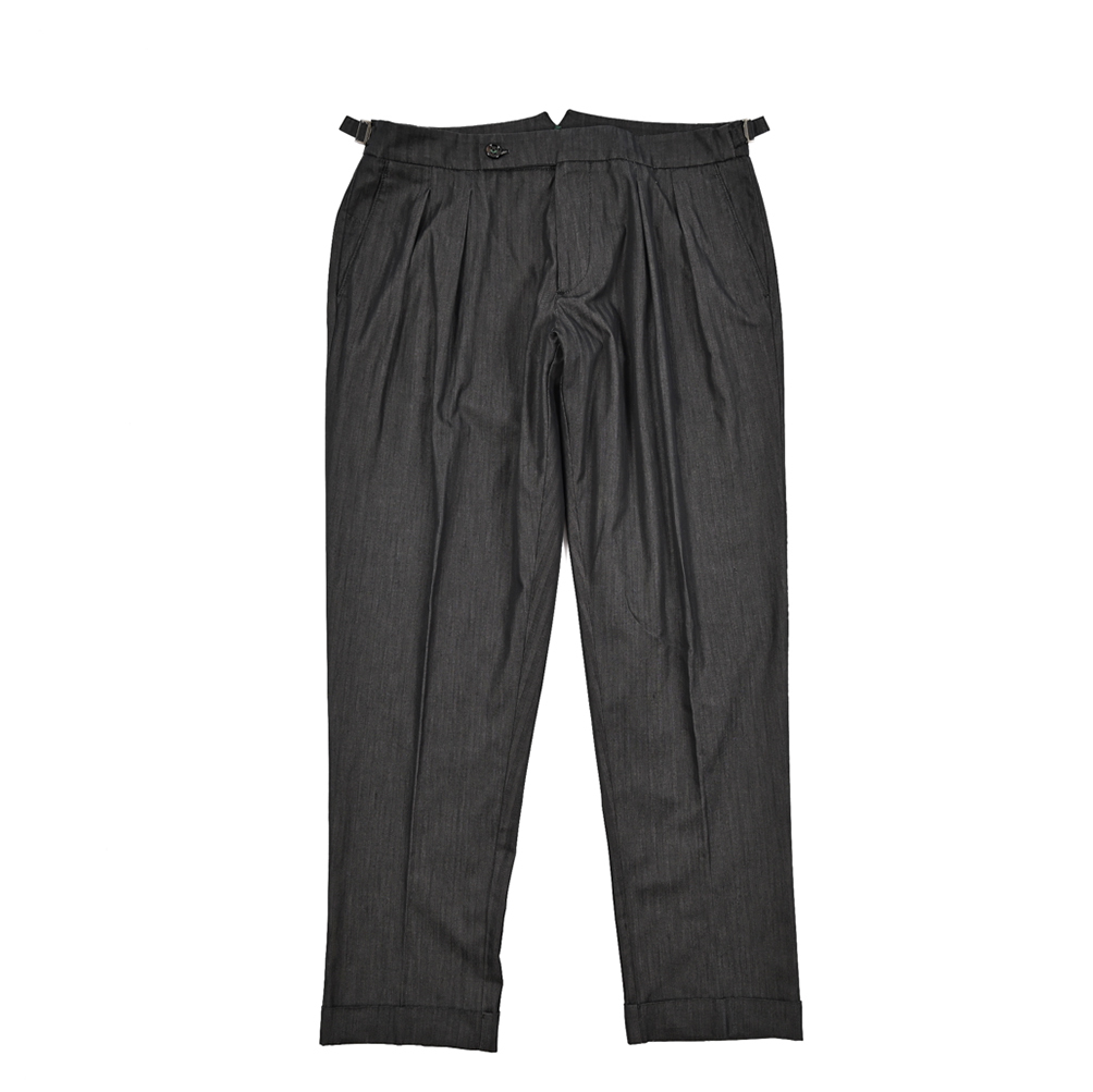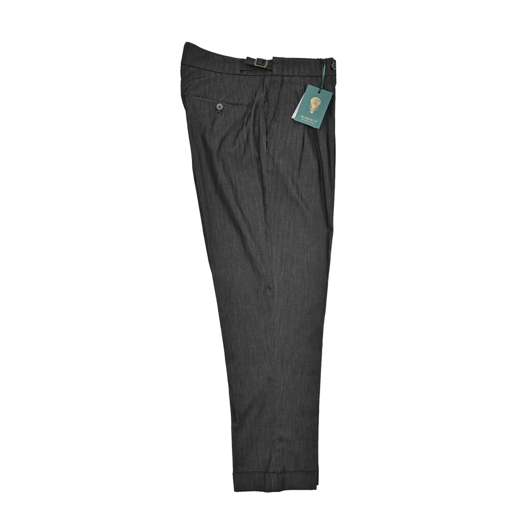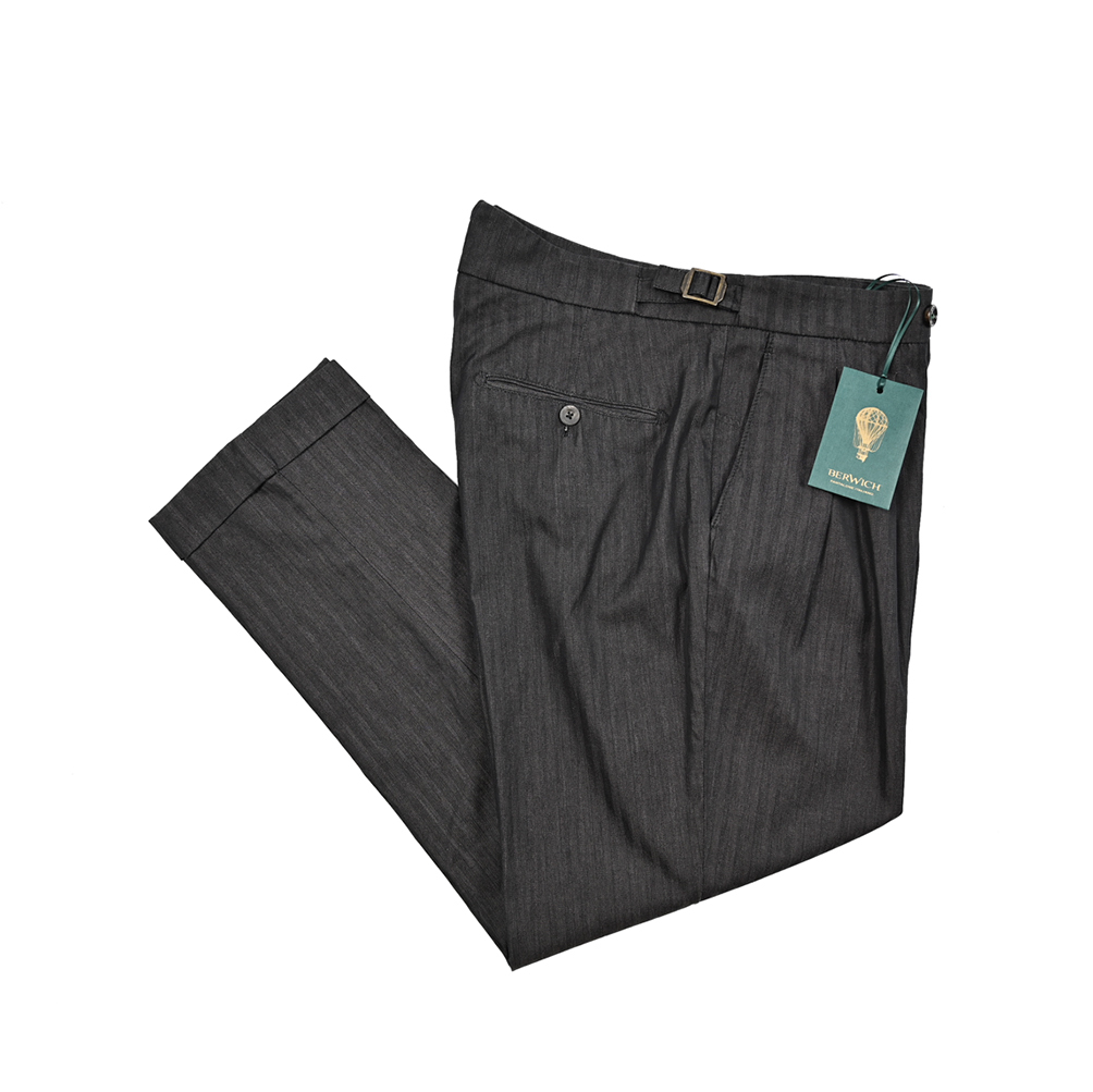 ベルウィッチ BERWICH SCOTCH デニムスラックス ツータック ベルトレス パンツ メンズ コットン100% シャドーストライプ チャコールグレー MADE IN ITALY | |