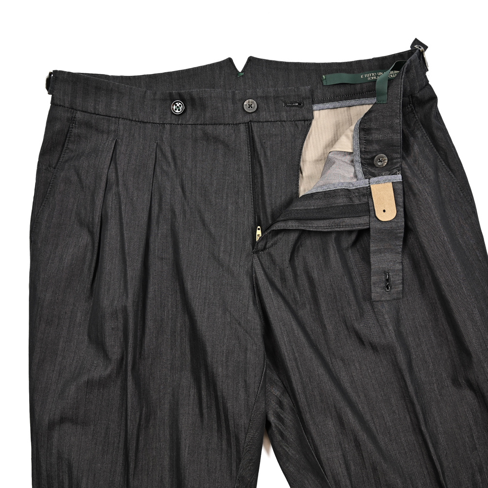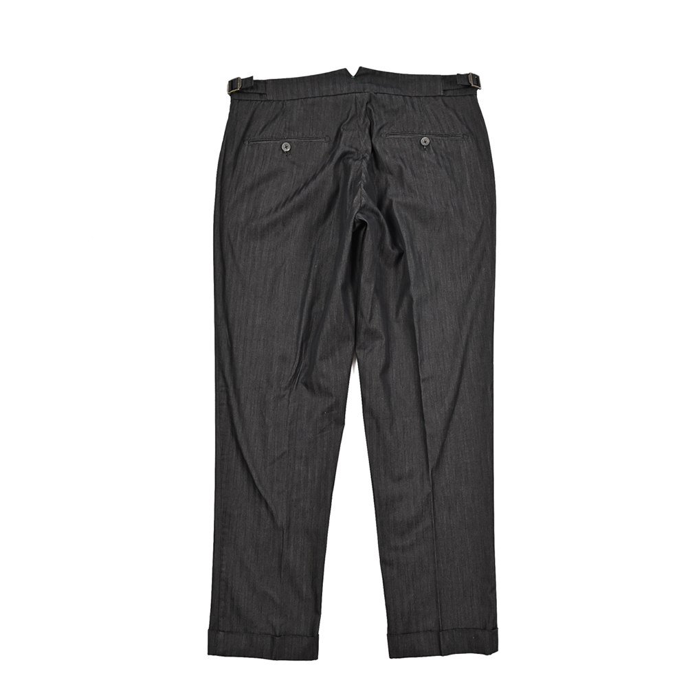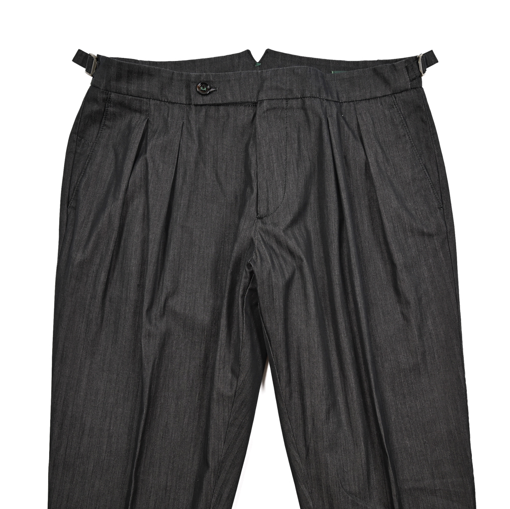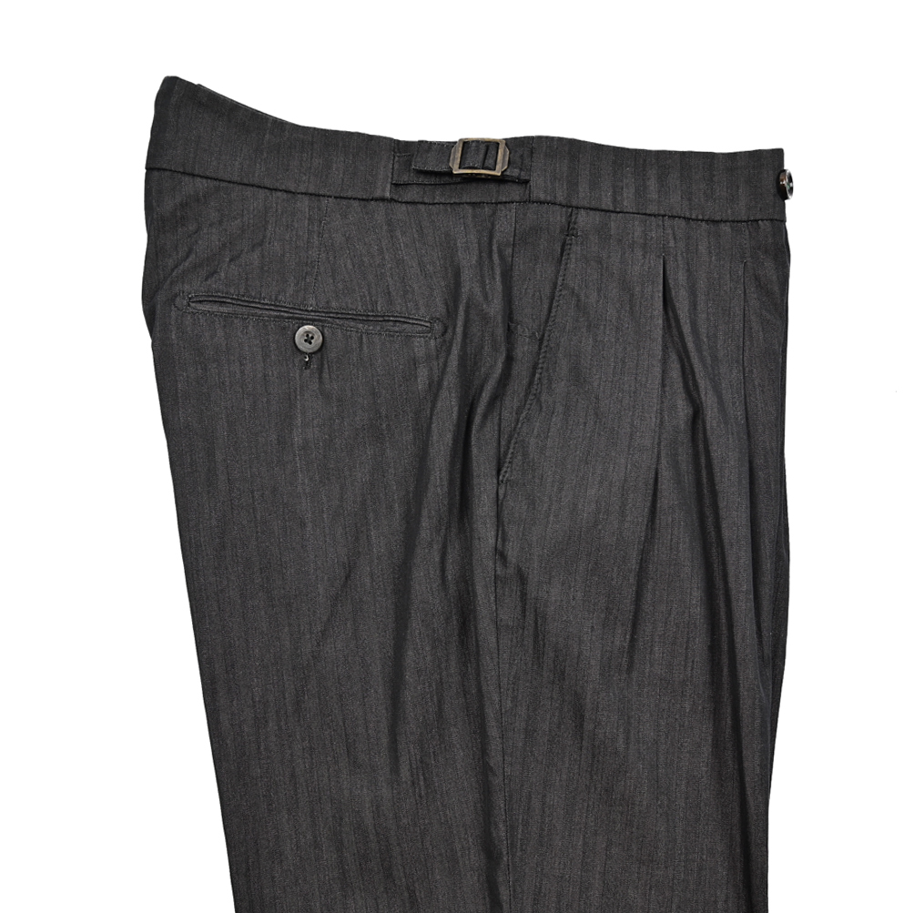 ベルウィッチ BERWICH SCOTCH デニムスラックス ツータック ベルトレス パンツ メンズ コットン100% シャドーストライプ チャコールグレー MADE IN ITALY | |