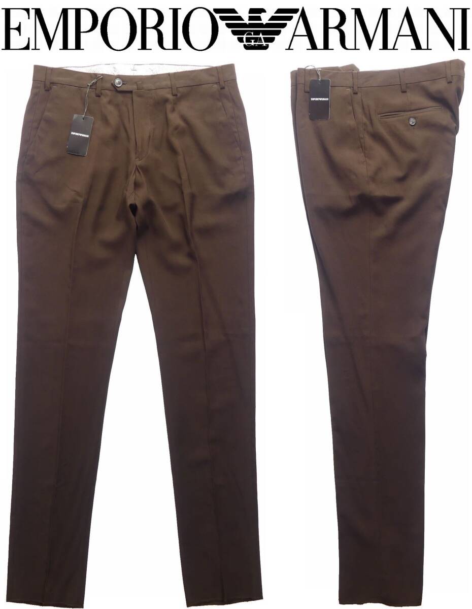 通年物67,000円新品EMPORIOARMANIアルマーニ★若々しく軽やかに見えて第一印象で好感度が高い茶系パンツ【56=40インチ】
