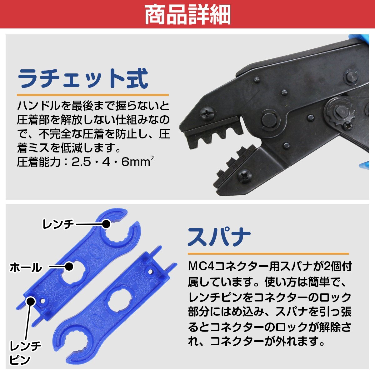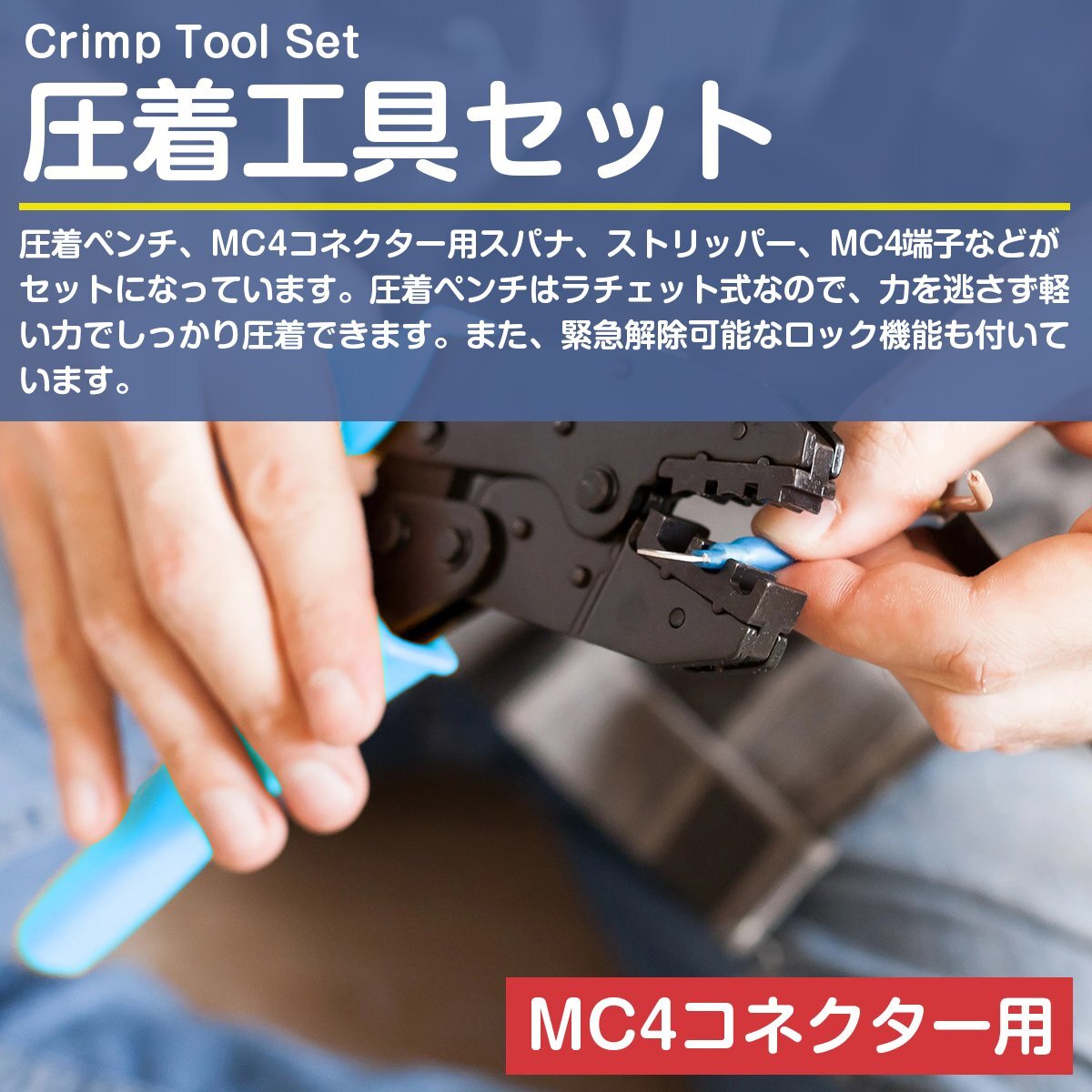 圧着ペンチ、MC4コネクター用スパナ、ストリッパー、MC4端子が