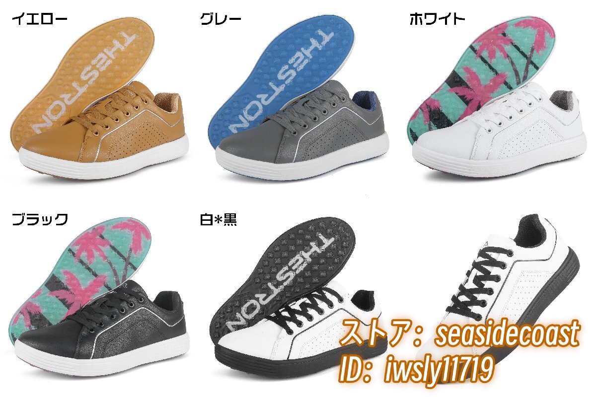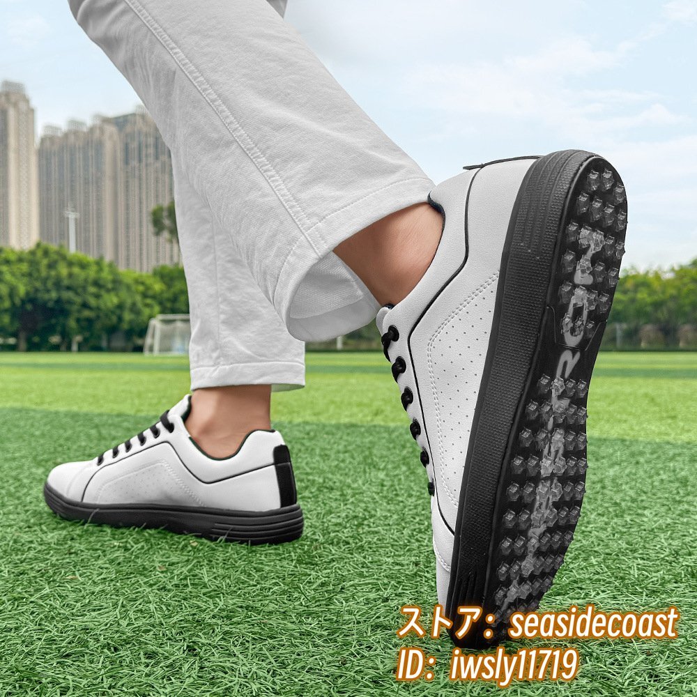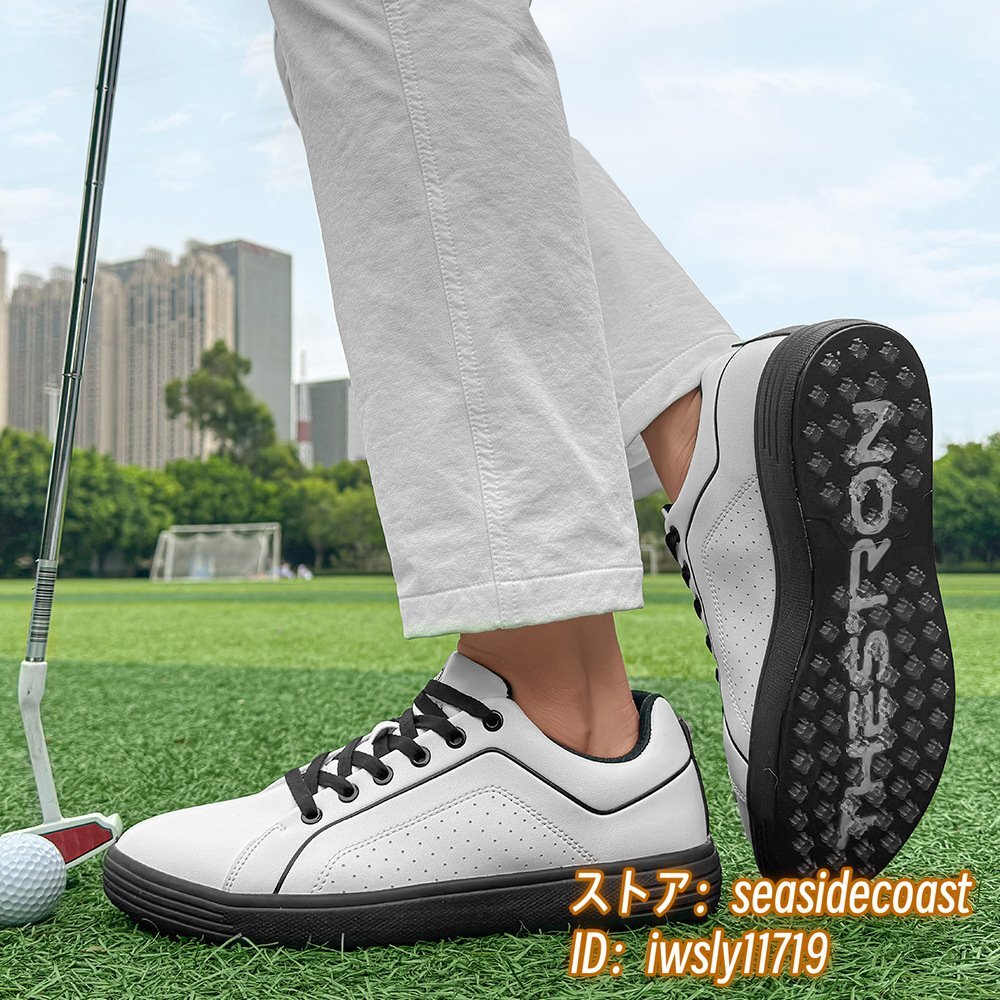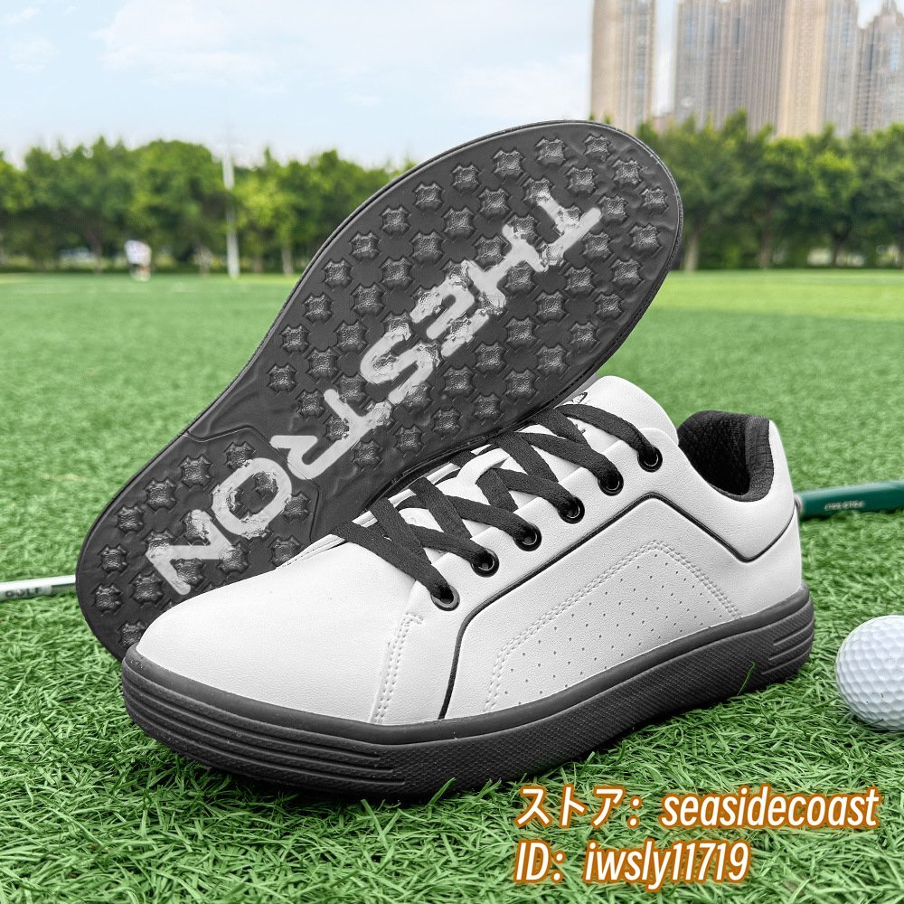 超希少◆ゴルフシューズ 新品 スニーカー メンズ 通気性 4E 幅広 スポーツシューズ 運動靴 スパイクレス フィット感 防滑 白*黒 26.0cm