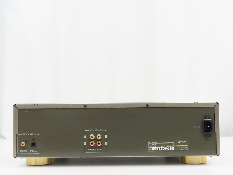■メーカー : DENON ■型番 : DCD-1650AR ■外径寸法 : W434×H135×D340mm ■重量 : 11.9kg 【商品の状態 当店での確認内容】 基本動作は確認出来ておりますが、トレイ内部にベタつきがございます。 「商品の状態」に関しましては当方主観の目安となります。外観などは中古品で個人差もありますので詳細は画像にてご判断ください。 画像にて不明な点はご質問下さい。 出品商品は画像のものですべてになります。画像に写っているもの以外は付属いたしません。 ※注意※ ヤフオクのシステム上、送料表記が送料未定となっておりますが、送料に関しては全て有償となりますので下記を参照下さい。 【送料 全国一律 2,080 円 沖縄、離島は別途お見積り】 ※送料がお得になるサービスです(下取りシステムのご案内です) 当ストアでは商品を安全にお届け出来るよう提携運送会社と協議の上、発泡緩衝材や強度段ボールの使用等 運送会社が指定する梱包方法や資材を採用しております。 より安全にお届け出来るよう商品仕様により梱包サイズが大きくなる場合や個口数が増える事がございます。 【当ストアオークションルールを入札前に必ずご確認ください。】 【落札後の取引手順】 ・落札後は取引ナビにて、必要事項をご入力後、送信ください。 取引終了後48時間(土、日は除く)以内に入力をお願い致します。 ※ご連絡が頂けない場合は落札者様都合でのキャンセルとさせていただきます。 ・落札代金(商品代金+消費税+送料)の入金をお願い致します。 ※大型商品の場合は送料確定後の決済となる為取引ナビを入力頂き、当ストアより送料のご案内が来るまでお待ちください。(土曜、日曜、祝日の場合は翌営業日より順次ご案内いたします) ・お支払い方法は※クレジットカード/※PayPay残高/※PayPayクレジット/PayPay銀行/ゆうちょ銀行のみです。 ※商品代金引換(代引き)のお取り扱いはしておりません。 ※領収証の発行が必要な方はご連絡ください。 ※銀行振込の際の振込手数料はご負担願います。 ・入金確認後に出荷手配を致します。 (原則入金確認後3営業日以内に発送いたしますが、大型や重量のある製品はお時間をいただく場合もございます。) ・発送は当店指定の運送会社の元払いのみでの発送となります。 ※他の運送会社、送料代引き等は致しかねます。 ※落札者様ご自身での運送会社の手配いただく事も可能ですが荷物事故の責任の所在の問題上、梱包は致しかねます。 ※店頭にお越し頂き手渡しも可能(福岡市早良区)です。ご希望の方はご落札後にご連絡下さい。 ・大型/重量物商品の送料につきましては商品の特性上、荷降ろし状況等により送料が大きく前後し運送業者に別途見積りが必要な為、早めのお問い合わせにてお見積り上、入札をお願い致します。 【初期不良の保証について】 ・商品到着後の初期動作不良、また配送中の事故による破損、不具合が有る場合は、商品発送後10日以内に当ストアまでご連絡ください。当ストアでは修理での対応を優先させて頂きますが、修理不可の場合は全額返金させて頂きます。 (商品代金+消費税+送料のお支払い頂いた金額となります) 【初期不良の保証の対象外について】 次の場合は保証の対象外となりますのご留意ください ・ジャンク商品、現状商品、難あり商品での出品商品。 ※難あり商品に関しましては動作確認時に一部動作不良が確認された商品になり、記載している動作確認以外にも、動作不良がある可能性もございます。こちらに関しましても保証対象外となりますことをご理解ください。 ・年代物のオーディオなどで、当店にてわからない範囲で部品が交換されている場合 ・楽器類の特殊機材(マイクロスコープ等)での確認までは行っておりません。気になる方は事前にご質問いただくか、入札をお控えください。 ※初期不良に関しましては【商品の状態】に記載のもの、またそれによって起因する動作不良は対象外です。 ※商品発送後10日を過ぎてのご連絡は対応が出来ませんので、商品が到着しましたらお早めに確認をお願い致します。 【メーカー保証の加入・継承】 ・未使用品、展示品やメーカー保証期間が残っている商品に関しまして、メーカー保証の加入、継承が必要な方は、落札後取引ナビ内にて当ストアにお知らせください。商品発送までにご連絡いただけない場合、メーカー保証の手続きを承れない場合があります。 【評価について】 ・評価不要の場合、必ず取引ナビの「要望欄」にてお知らせください。それ以外でご連絡をいただいた場合、対応できない可能性がございます。一度行った評価はシステム上取り消しが行えませんのでご了承ください。 【入札削除・キャンセルについて】 ・入札後はトラブル防止の為いかなる事情がおきましても入札を削除等は致しておりません。 ご検討の上入札をお願い致します。間違った際の入札額の金額訂正はご自身で行ってください。 入札額の変更方法 【入札に関しての注意事項】 ・最近イタズラ入