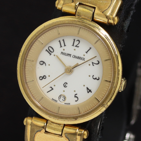 1円 稼働 フィリップシャリオール ラウンド 63.97.1429 QZ ホワイト文字盤 レディース腕時計 5237100 9PRT MST
